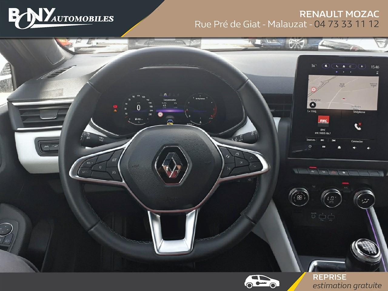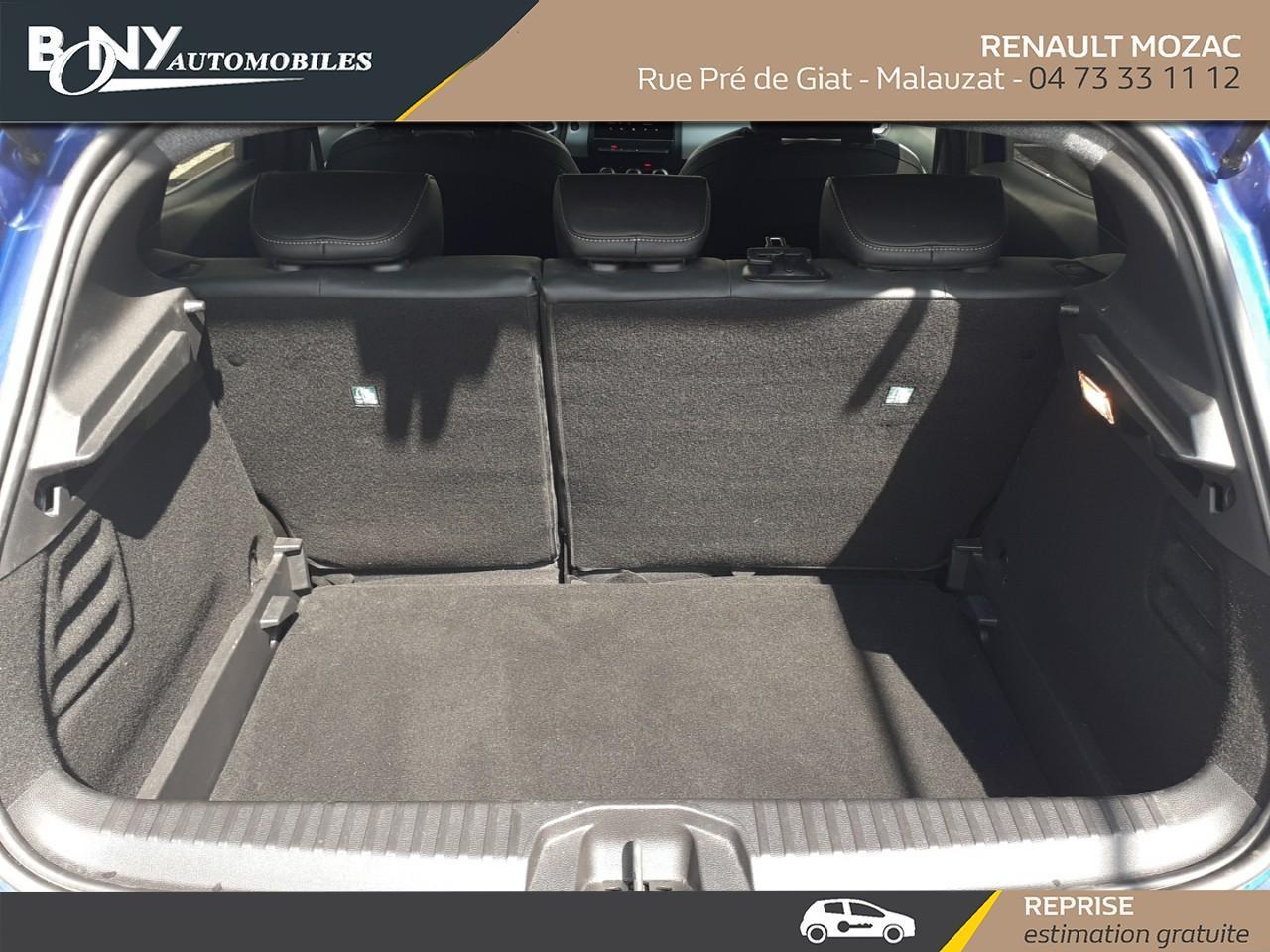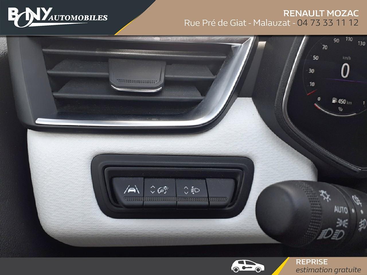 • Régulateur limiteur de vitesse• Assistance au freinage d'urgence (A.F.U.)• Vitres AR surteintées• Sièges AV réglable en hauteur• Airbag passager déconnectable• Kit de gonflage• Carte Renault "Mains libres"• Décor Extérieur Chrome• Rétroviseurs extérieurs Noir brillant• Airbags frontaux• Renault Multi-Sense (choix de modes de conduite)• Aide au parking AR• Aide au démarrage en côte• Airbags latéraux AV• Assistant maintien de voie• Caméra de recul• Mode ECO• Accoudoir central avec rangement• Appuie-têtes AR• Climatisation automatique• Antenne Requin• Canule d'échappement chromée• Décors Extérieur Noir Brillant• Harmonie noire• Volant TEP• EASY LINK 7" : Système multimédia connécté avec écran 7" avec Navigation et Radio Numérique DAB• Feux de stop à LED• Frein de parking assisté automatique avec Auto hold• Allumage automatique des essuie-glaces• Eclairage AV et AR Full LED Pure Vision• Feux AR avec signature à LED• Projecteurs Full LED avec signature lumineuse en force de "C"• Tableau de bord numérique 7"• Sellerie mixte similicuir Tissu• Freinage actif d'urgence avec détection piétons et cyclistes (AEBS City + Inter Urbain+ Piéton)• Jantes alliage 16" Philia diamantée noir• Calandre étoilée• Liseuses AV et AR à LED• Navigation connect?e cartographie Europe, recherche avec Google, info trafic live et auto update• Ambiance Gris clair (bandeau planche de bord, entourage de console centrale et panneaux de portes)• Alerte de survitesse• Freins AV à disque ventilé