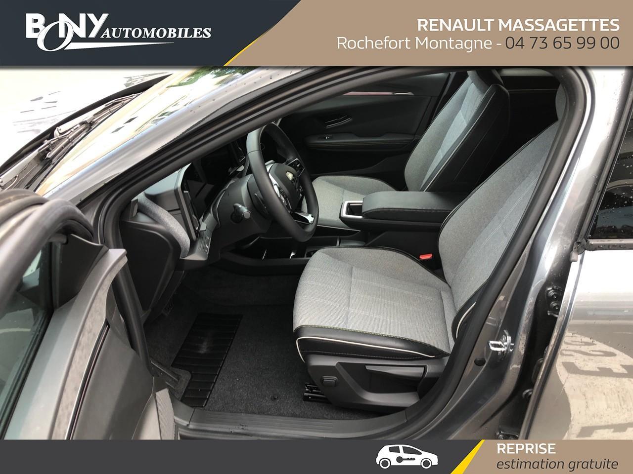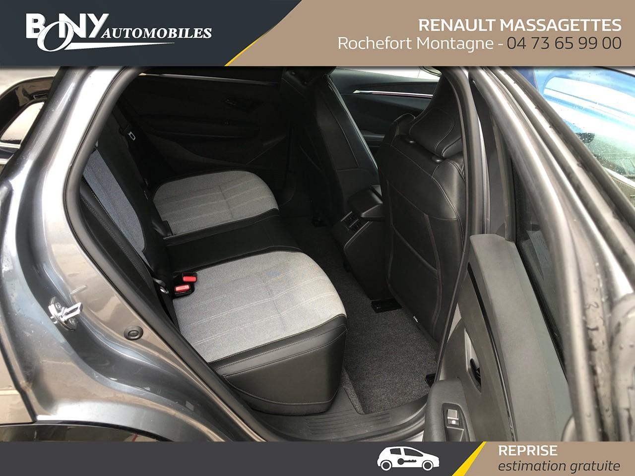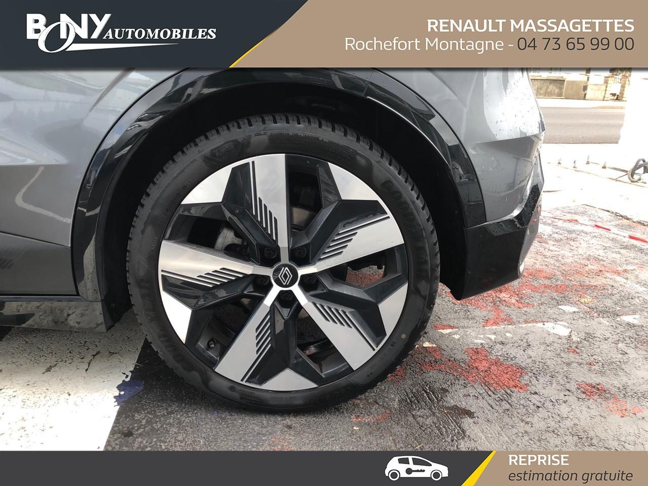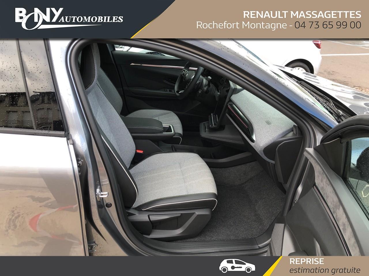 • 3 appuis-tête AR réglable en hauteur• 4 Ports USB (2 AV et 2 AR)• Aide au freinage d'urgence• Airbag déconnectable• Airbags frontaux (conducteur et passager)• Airbags latéraux, milieu AV et rideaux• Alerte d'oubli de ceinture de sécurité• Alerte de distance de sécurité• Alerte et assistant maintien de voie• Ambiance interieure E3• Antenne Requin• Appel d'urgence• Bandeau full LED AR avec effet 3D "moiré"• Banquette rabattable 1/3 2/3• Bouclier AV Sport avec lame F1 ton caisse• Bouclier AV sport avec lame F1• Caméra de recul• Carte Renault accès et démarrage mains libres• Changement de mode de conduite via palettes au volant• Chargeur smartphone à induction• Classe energetique A• Climatisation automatique• Commutation automatique des feux de route/croisement• Commutation automatique des feux et détecteur de pluie• Console de rangement haute avec accoudoir• Contrôle dynamique de trajectoire ESC avec ASR• Câble de recharge pour Wallbox (mode 3 type 2, 5m)• Détection de fatigue• Détection de la pression des pneus• Eclairage d'accueil portes AV• Feux anti-brouillard LED• Feux de jour à LED• Feux de jour à LED• Jantes alliage diamantées 20" Soren• Jantes alliage diamantées 20" Soren• Kit de gonflage• Lunette AR chauffante• Lève-vitre AR électrique à impulsion• Lève-vitres AV électriques à impulsion• Mode ECO• Multi-sense• Peinture mono-ton• Poignées de portes affleurantes• Purificateur d'air• Radars AR• Régulateur limiteur de vitesse• Réplication smartphone• Rétroviseur jour/nuit automatique• Rétroviseurs extérieurs noir brillant• Signature lumineuse AV