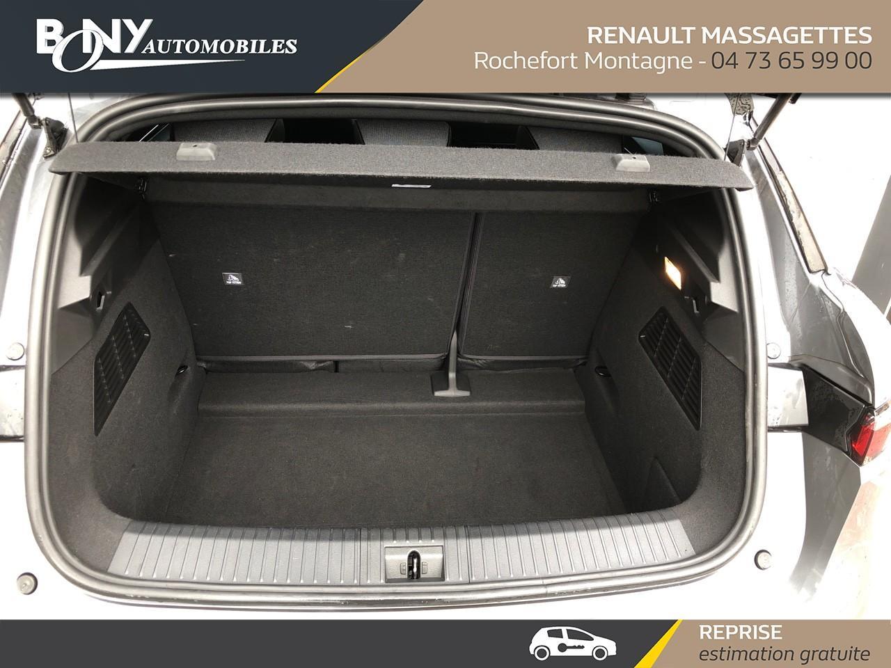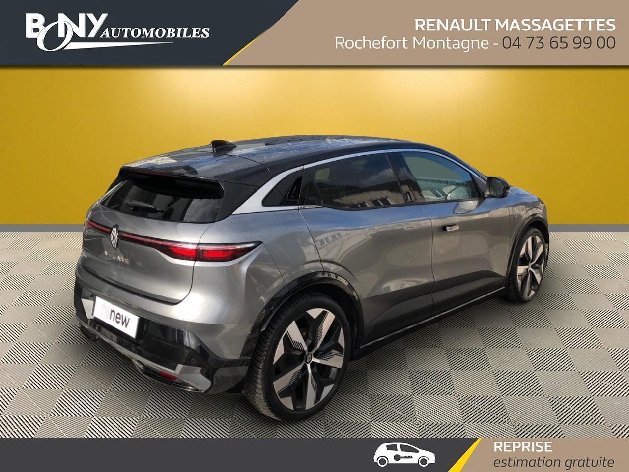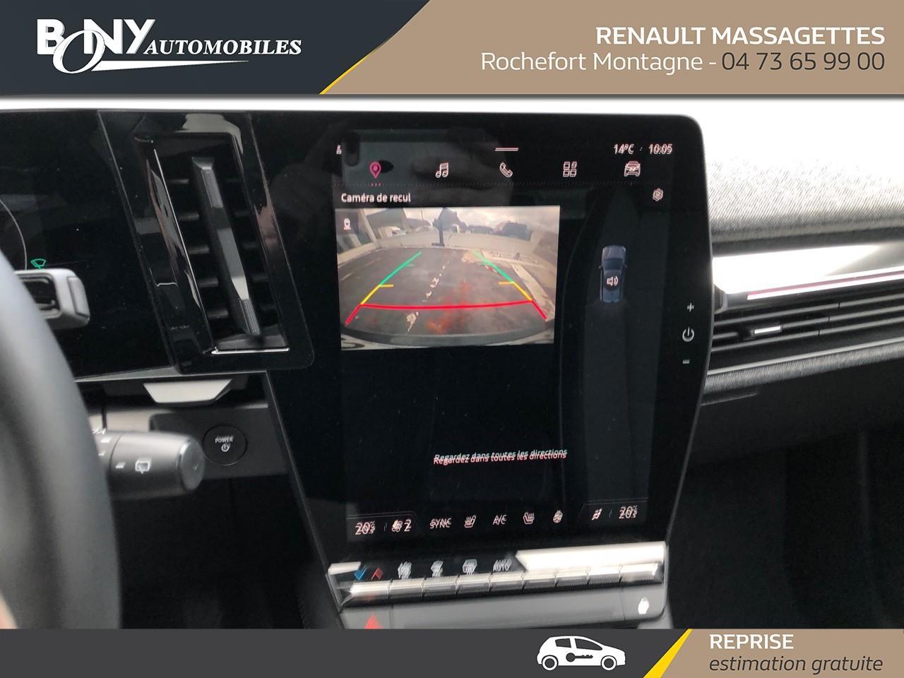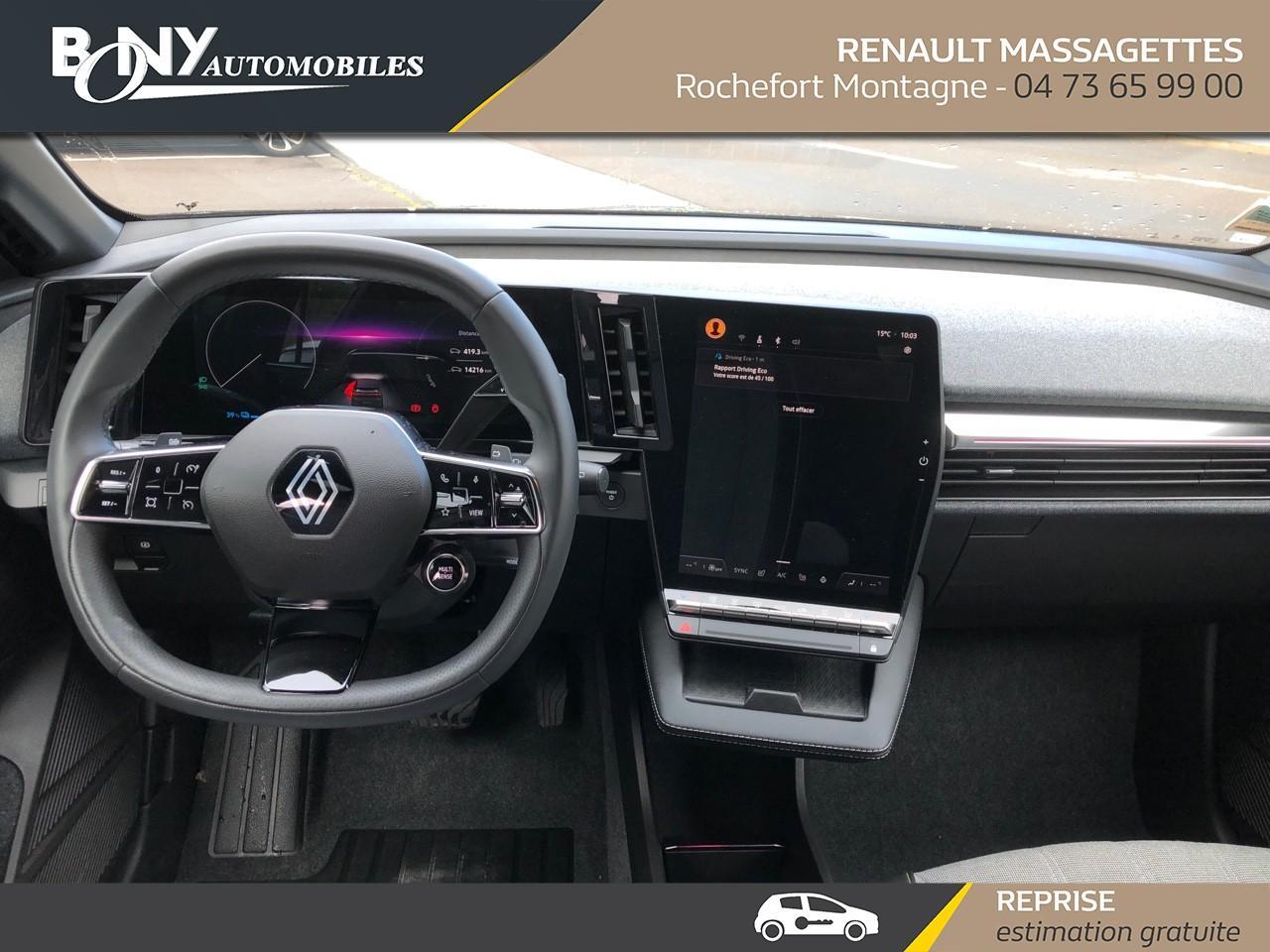• 3 appuis-tête AR réglable en hauteur• 4 Ports USB (2 AV et 2 AR)• Aide au freinage d'urgence• Airbag déconnectable• Airbags frontaux (conducteur et passager)• Airbags latéraux, milieu AV et rideaux• Alerte d'oubli de ceinture de sécurité• Alerte de distance de sécurité• Alerte et assistant maintien de voie• Ambiance interieure E3• Antenne Requin• Appel d'urgence• Bandeau full LED AR avec effet 3D "moiré"• Banquette rabattable 1/3 2/3• Bouclier AV Sport avec lame F1 ton caisse• Bouclier AV sport avec lame F1• Caméra de recul• Carte Renault accès et démarrage mains libres• Changement de mode de conduite via palettes au volant• Chargeur smartphone à induction• Classe energetique A• Climatisation automatique• Commutation automatique des feux de route/croisement• Commutation automatique des feux et détecteur de pluie• Console de rangement haute avec accoudoir• Contrôle dynamique de trajectoire ESC avec ASR• Câble de recharge pour Wallbox (mode 3 type 2, 5m)• Détection de fatigue• Détection de la pression des pneus• Eclairage d'accueil portes AV• Feux anti-brouillard LED• Feux de jour à LED• Feux de jour à LED• Jantes alliage diamantées 20" Soren• Jantes alliage diamantées 20" Soren• Kit de gonflage• Lunette AR chauffante• Lève-vitre AR électrique à impulsion• Lève-vitres AV électriques à impulsion• Mode ECO• Multi-sense• Peinture mono-ton• Poignées de portes affleurantes• Purificateur d'air• Radars AR• Régulateur limiteur de vitesse• Réplication smartphone• Rétroviseur jour/nuit automatique• Rétroviseurs extérieurs noir brillant• Signature lumineuse AV