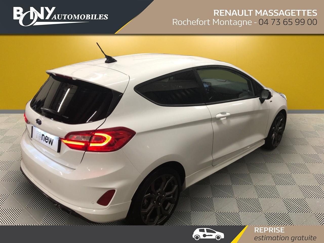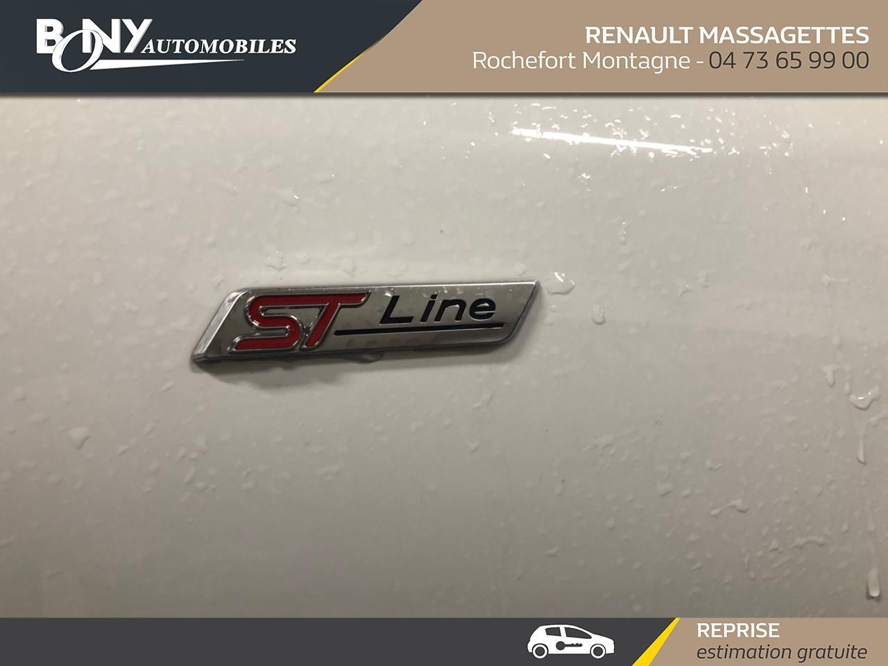 • 2 Fixations ISOFIX aux places AR• 3ème appui-tête AR• 5 ceintures de sécurité 3 points• Aide au démarrage en côte• Aide au maintien dans la voie• Air conditionné automatique• Airbags frontaux, latéraux (thorax) et rideaux• Alerte de ceinture de sécurité AV/AR• Alerte de franchissement involontaire de ligne• Allumage automatique des essuie-glaces• Allumage automatique des feux• Badges ST-Line sur les ailes AV• Banquette rabattable - 60/40• Becquet AR couleur carrosserie• Bouton de démarrage "Ford Power"• Console centrale avec accoudoir et rangements• Direction assistée électrique• Disques de frein AR• Désactivation de l'airbag passager• ESP• Eclairage d'ambiance intérieur• Environnement noir• Feux antibrouillard AV avec fonction éclairage d'angle• Feux de jour à LED et feux AR à LED• Grille de calandre ST-Line• Indicateur de changement de vitesse• Kit de carrosserie• Kit de réparation des pneumatiques• Levier de frein à main en cuir• Levier de vitesse spécifique ST-Line• Limiteur de vitesse• Ordinateur de bord avec EcoMode• Pack Parking• Pavillon de toit noir• Poignées de portes couleur carrosserie• Pédalier Sport en Aluminium• Régulateur de vitesse• Rétroviseur intérieur électrochrome• Sellerie tissu noir Court avec renforts latéraux View• Seuil de porte ST-Line• Sièges AV Sport• Sortie d'echappement chromée• Suspension Sport• Système KeyFree avec ouverture et démarrage sans clé• Système MyKey (seconde clé programmable)• Système de surveillance de la pression des pneus• Tapis de sol ST-Line AV et AR• Trappe Easy Fuel• Verrouillage centralisé à distance• Vitres AR surteintées