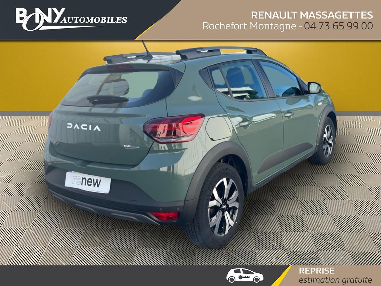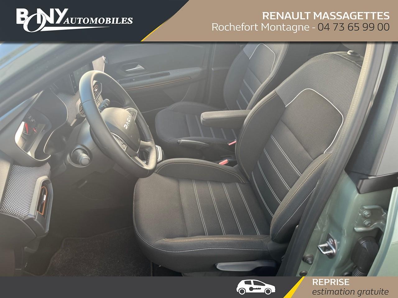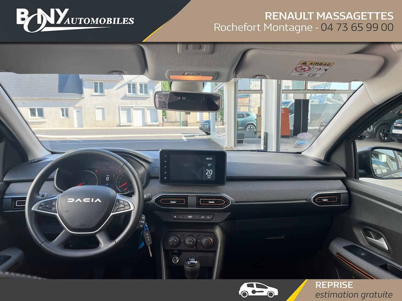 • 3 appuis-têtes AR• Aide au parking AR• Airbag frontal conducteur et passager• Airbag latéral avant : thorax + rideau• Allumage des feux et essuie-glace automatiques• Banquette AR rabattable 1/3-2/3• Barres de toit modulables• Bouton appel d'urgence• Climatisation manuelle• Clé 3 boutons• Condamnation centralisée des portes• Condamnation des ouvrants en roulant• Console basse + rangement ouvert• Détection de pression des pneus• Eclairage du coffre• Enjoliveur 16'' Saria• Enjoliveur 16'' Saria - Stepway• Feux arrières avec signature lumineuse Y• Feux de jour à LED• Fonction éco-mode• Kit de gonflage• Lève-vitres AR électriques• Lève-vitres AV électriques, conducteur impulsionnel• Nouvelle identité visuelle• Ordinateur de bord• Projecteurs antibrouillard• Rappel de bouclage de ceintures• Régulateur et limiteur de vitesse• Rétroviseur intérieur jour/nuit• Rétroviseurs extérieurs ton carrosserie• Rétroviseurs extérieurs électriques et dégivrants• Sellerie Stepway avec surpiqures• Signature lumineuse DACIA en Y à LED• Siège conducteur réglable en hauteur + accoudoir AV• Système anti-blocage des roues (ABS)• Système de fixation Isofix• Vitres teintées• Volant Soft Feel TEP• Volant réglable en hauteur et en profondeur• Assistance au freinage d'urgence + allumage des warnings• Media display (écran 8'', réplication smartphone, 4 haut-parleurs, 1 port USB)• Système de freinage d'urgence autonome à des vitesses interurbaines 7-170km/h• Tableau de bord avec écran numérique 3,5'' et compteurs analogiques• Jantes 16'' Mahalia diamantée noir• Pack City• Peinture opaque• Roue de secours