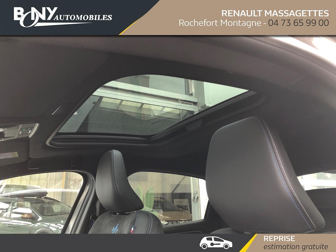 • Aide au freinage d'urgence (A.F.U.) • Airbag passager déconnectable • Airbags frontaux conducteur et passager adaptatif • Airbags rideaux de têtes aux places AV et AR • Alerte Distance Sécurité • Antiblocage des roues ABS • Apple CarPlay et Android Auto sans fil • Appuie-têtes AV / AR réglables en hauteur • Assistant maintien de voie • Avertisseur de sortie de stationnement • Aérateurs aux places AR • Banquette AR avec accoudoir central • Boitier connect AIVC • Bouton d'appel d'urgence R-Call • Caméra de recul • Centrage dans la voie (active driver assist) • Chargeur smartphone à induction • Ciel de toit noir • Climatisation automatique • Commutation automatique des feux de route/croisement • Condamnation centralisée des portes • Console centrale avec levier de vitesse e-shifter • Contrôle dynamique de trajectoire ESC avec ASR • Coques de rétroviseurs extérieures noires • Design esprit Alpine extérieur • Design esprit Alpine intérieur • Double canule d?échappement noir brillant • Détecteur d'angle mort • Eclairage d'ambiance • Feux de jour à LED avec signature lumineuse C-Shape • Frein de parking électrique avec fonction Auto-Hold • Harmonie foncé • Indicateur de changement de vitesse • Jantes alliage 19?? esprit Alpine • Kit de gonflage et de réparation des pneumatiques • Lunette AR chauffante • Lève-vitres AR électriques avec fonction anti-pincement • Lève-vitres AV électriques à impulsion • Plancher de coffre amovible • Programme eco mode • Projecteurs AV full LED Pure Vision • Purificateur d'air • Radar de parking AV • Renault Multi-sense • Régulateur de vitesse adaptatif Stop & Go • Répétiteurs de clignotant intégrés aux rétroviseurs • Rétroviseur intérieur électrochrome sans contour • Sans rangement de coffre • Sièges AV chauffants • Système ISOFIX (i-Size) aux places AR (latérales)