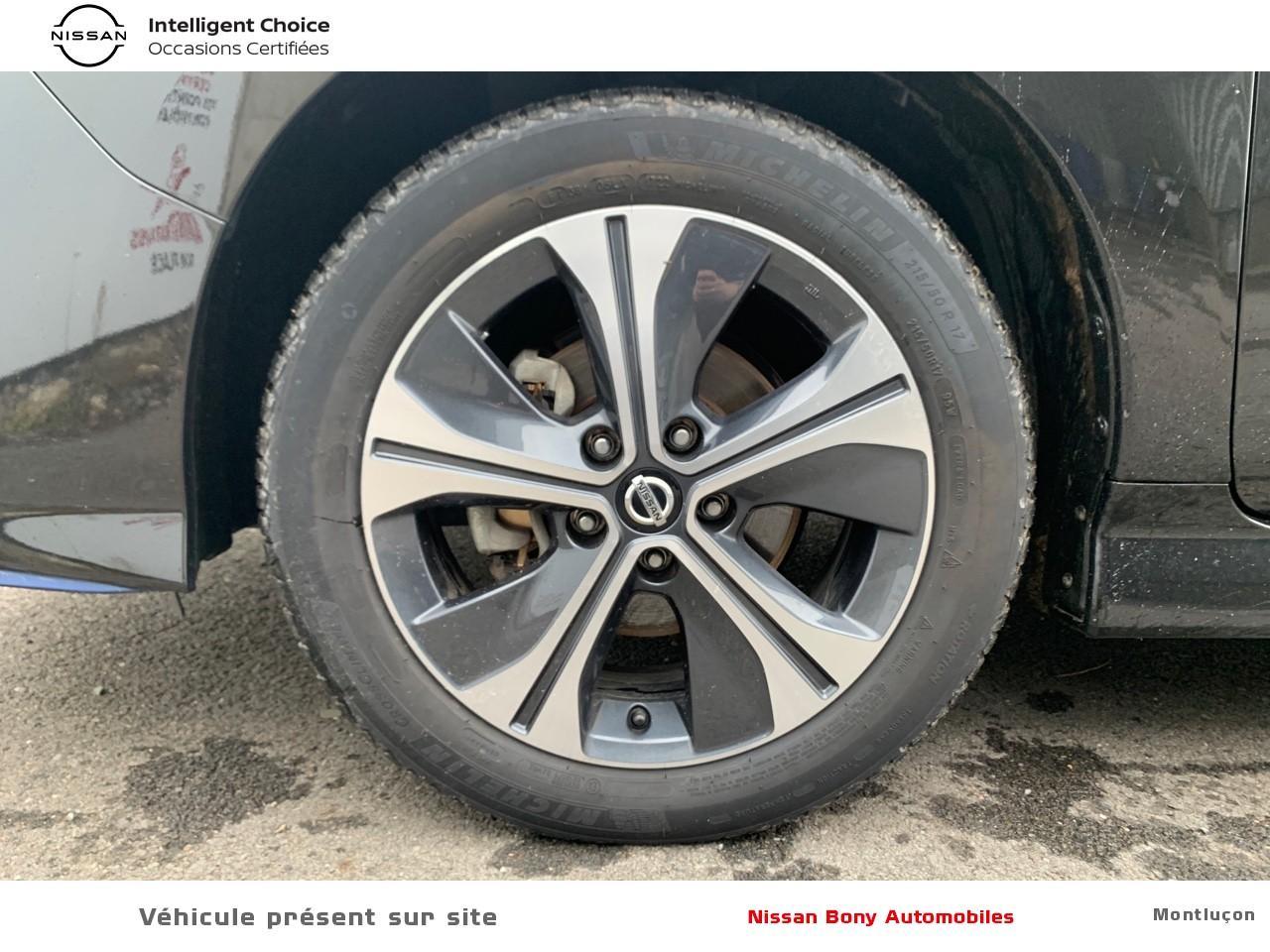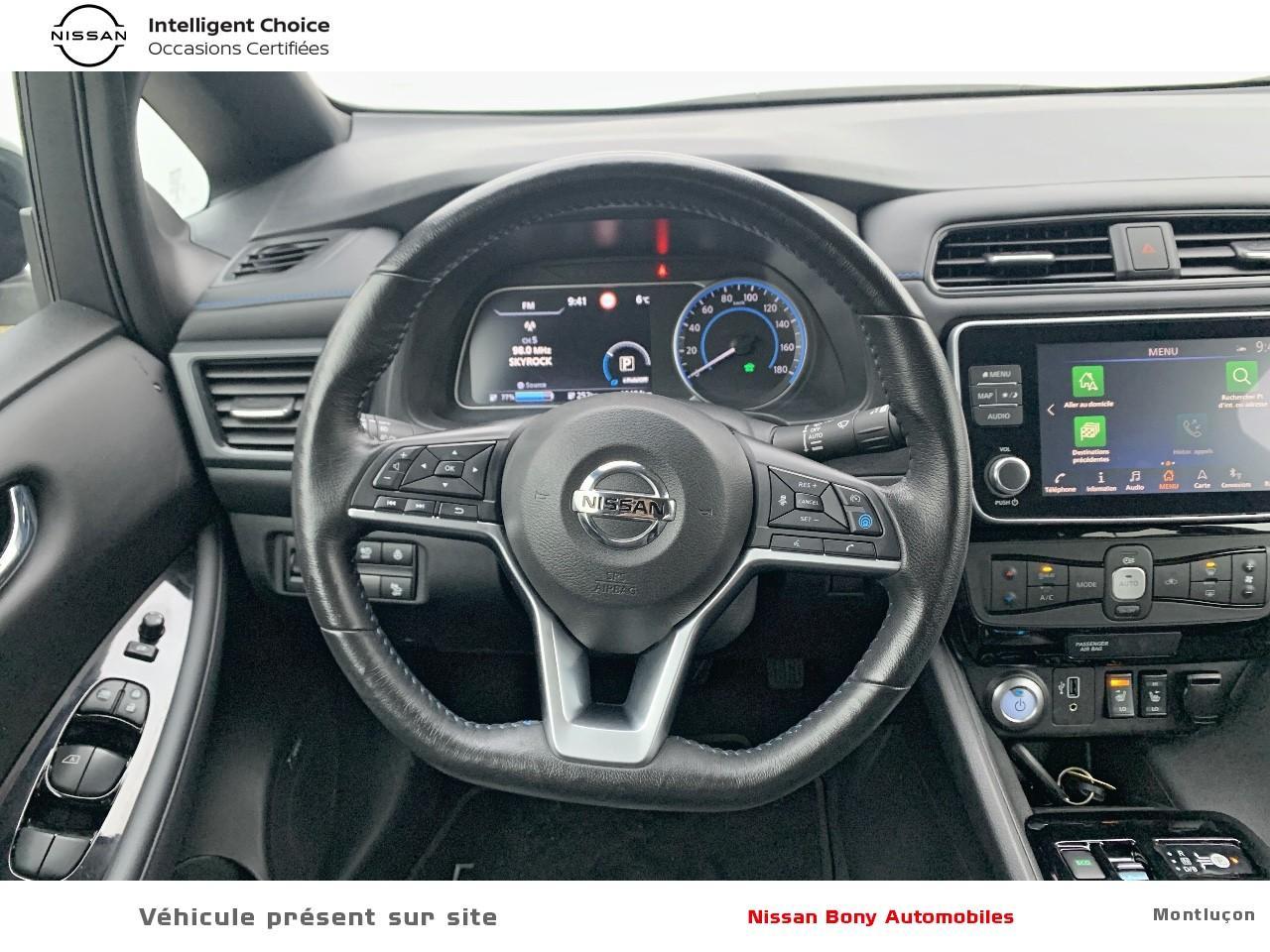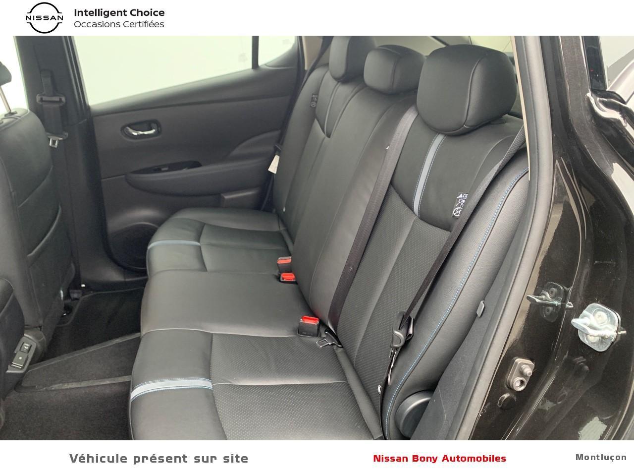 • ABS et EBD• Allumage automatique des feux• ESP• Indicateur de température extérieure• Jantes alliage 17"• Poches aumonières au dos des sièges AV• Poignées de portes chromées• Siège conducteur réglable en hauteur• Volant cuir• Volant réglable en hauteur• Système de contrôle de la pression des pneus• Rétroviseurs extérieurs rabattables électriquement• Allumage automatique des feux• Essuie-glace AR à intermittence• Feux AR à LED• Limiteur de vitesse• Essuie-glace AV à déclenchement automatique• Système d'ouverture et de démarrage sans clé "Intelligent key"• Système mains libres Bluetooth• Volant chauffant• 6 Airbags : frontaux, latéraux, rideaux• Aide au démarrage en côte• Extinction temporisé des phares "Follow me home"• Sièges AV/AR chauffants• Système audio BOSE Energy Efficient Series 7 HP• Fermeture et ouverture centralisée des portes à distance• Mode de conduite ECO• Mode de conduite "B"• Pare-soleil côté conducteur et passager avec miroir de courtoisie éclairé• Alerte de franchissement de ligne• Ceintures de sécurité AR 3 points à enrouleur• Sécurité enfants sur les portes AR• Prise 12V sur console centrale AV• Système de climatisation avec pompe à chaleur• Ouverture de la trappe de recharge depuis la clé• Programmation de la recharge• Rétroviseur intérieur électrochromatique• Commandes au volant (audio, Bluetooth, régulateur et limiteur de vitesses et contrôle de l'ordinate ur de bord)• Feux de route intelligents• Freinage d'urgence intelligent (AEB) avec détection piéton• Reconnaissance des panneaux de signalisation• Prévention de franchissement de ligne intelligent• Technologie E-pedal• Frein de stationnement électrique• Radars de stationnement AV et AR• Régulateur de vitesse intelligent• Nissan AVM - Vision Intelligente à 360°• ProPILOT : technologie de conduite assistée• Système "Chassis Control" (contrôle actif de trajectoire et de l'assiette)• Système d'alerte anticollision AR intelligent
