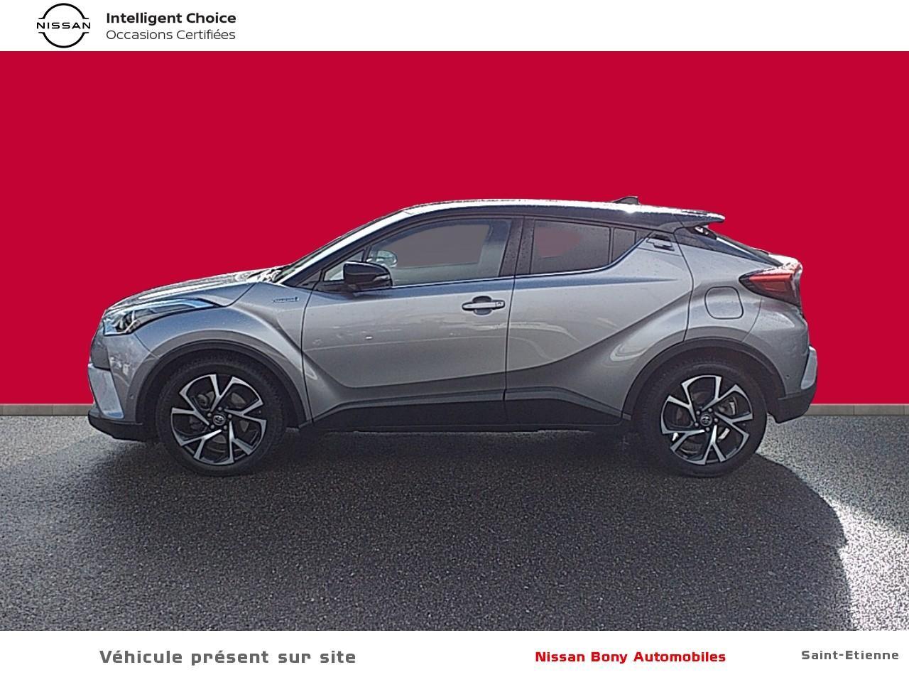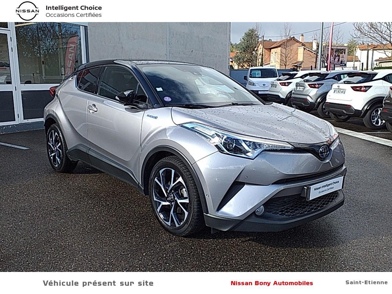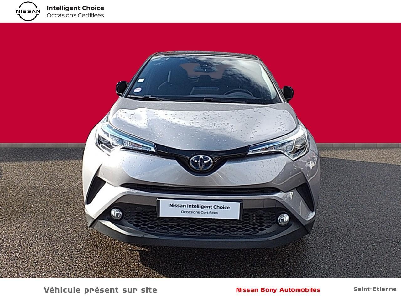 • 7 Airbags (frontaux et latéraux pour conducteur et passager AV, rideaux AV et AR et protège-genoux conducteur)• Allumage automatique des phares• Antenne aileron de requin• Avertisseur d'angles morts (BSM)• Avertisseur de circulation AR• Caméra de recul• Carrosserie bi-ton toit noir• Climatisation automatique bizone• Console centrale noire laquée• Détecteur de pluie• Ecran tactile 8"• Feux AR à LED• Feux de jour à LED• Fixation ISOFIX• Illumination des contre-portes• Indicateur de perte pression de pneus• Jantes alliage 18"• Kit de réparation anti-crevaison• Limiteur de vitesse• Lunette et vitres AR surteintées• Montant central (pilier B) noir laqué• Ordinateur de bord avec écran TFT couleur 4.2" multifonctions• Phares à extinction différée• Prises auxiliaire et USB• Projecteurs antibrouillard• Radars de stationnement AV et AR• Réglages manuels du siège conducteur• Rétroviseur intérieur anti-éblouissement• Rétroviseurs extérieurs chauffants• Rétroviseurs extérieurs rabattables automatiquement avec projection au sol du logo Toyota C-HR• Sellerie tissu gris foncé• Sièges AV chauffants• Sièges AV type sport avec maintiens latéraux• Support lombaire du siège conducteur (électrique)• Système d'aide au stationnement intelligent• Système d'amplification de freinage d'urgence BA• Système d'assistance au démarrage en côte (HAC)• Système d'ouverture/fermeture et démarrage sans clé "Smart Entry & Start" (conducteur, passager et coffre)• Système de contrôle de stabilité (VSC) + Système de contrôle de motricité (TRC)• Système de démarrage sans clé "Smart Start"• Système de fixation ISOFIX aux places latérales AR• Système de freinage antiblocage ABS• Système de téléphonie Bluetooth• Système multimédia Toyota Touch 2 (Système audio avec radio)• Toyota Safety Sense• Vitres AV et AR électriques• Volant cuir• Peinture métallisée• Toyota Touch & Go 2 Plus : système de navigation à écran tactile avec info trafic, cartographie européenne, visualisation 3D et reconnaissance vocale