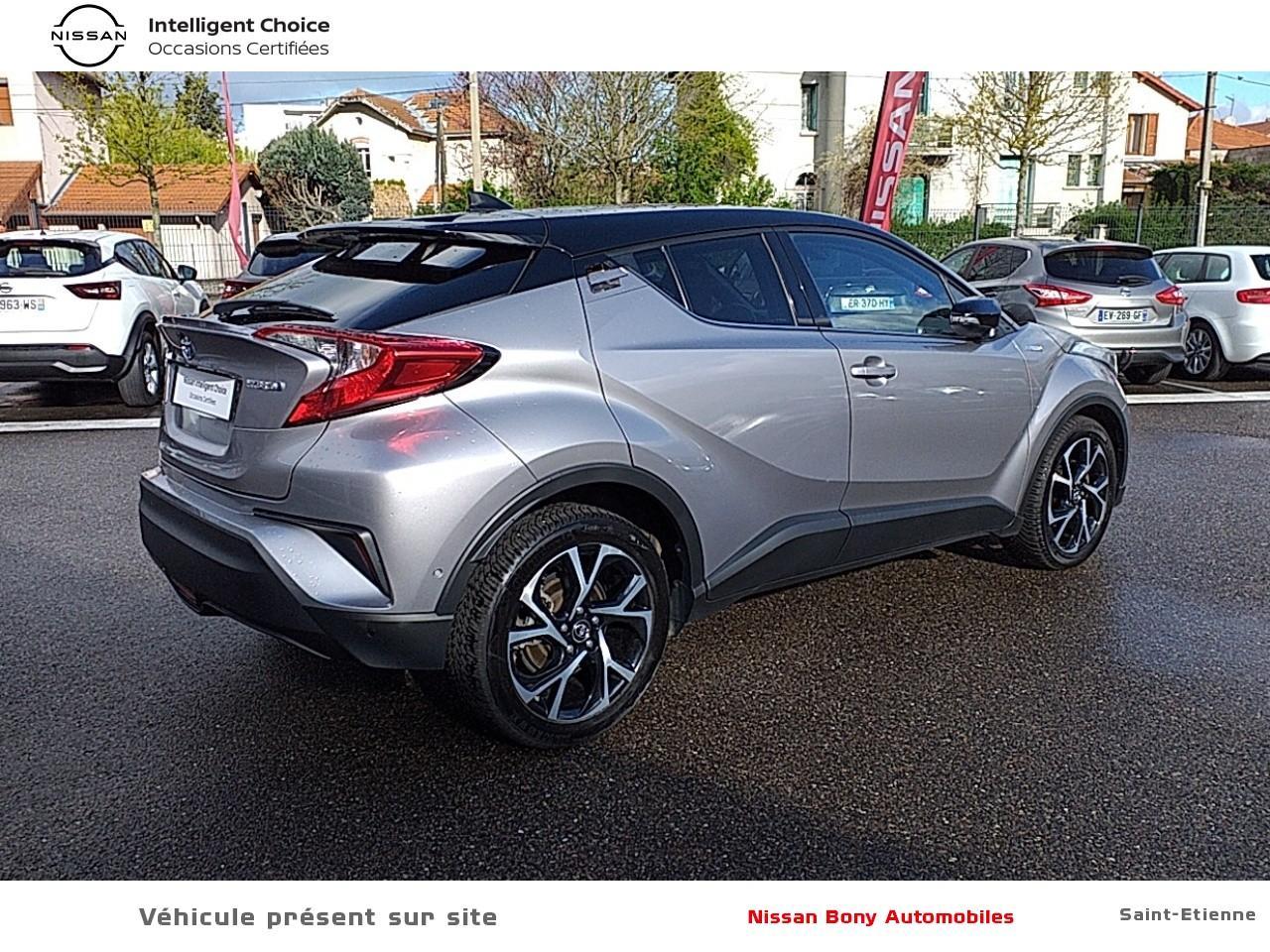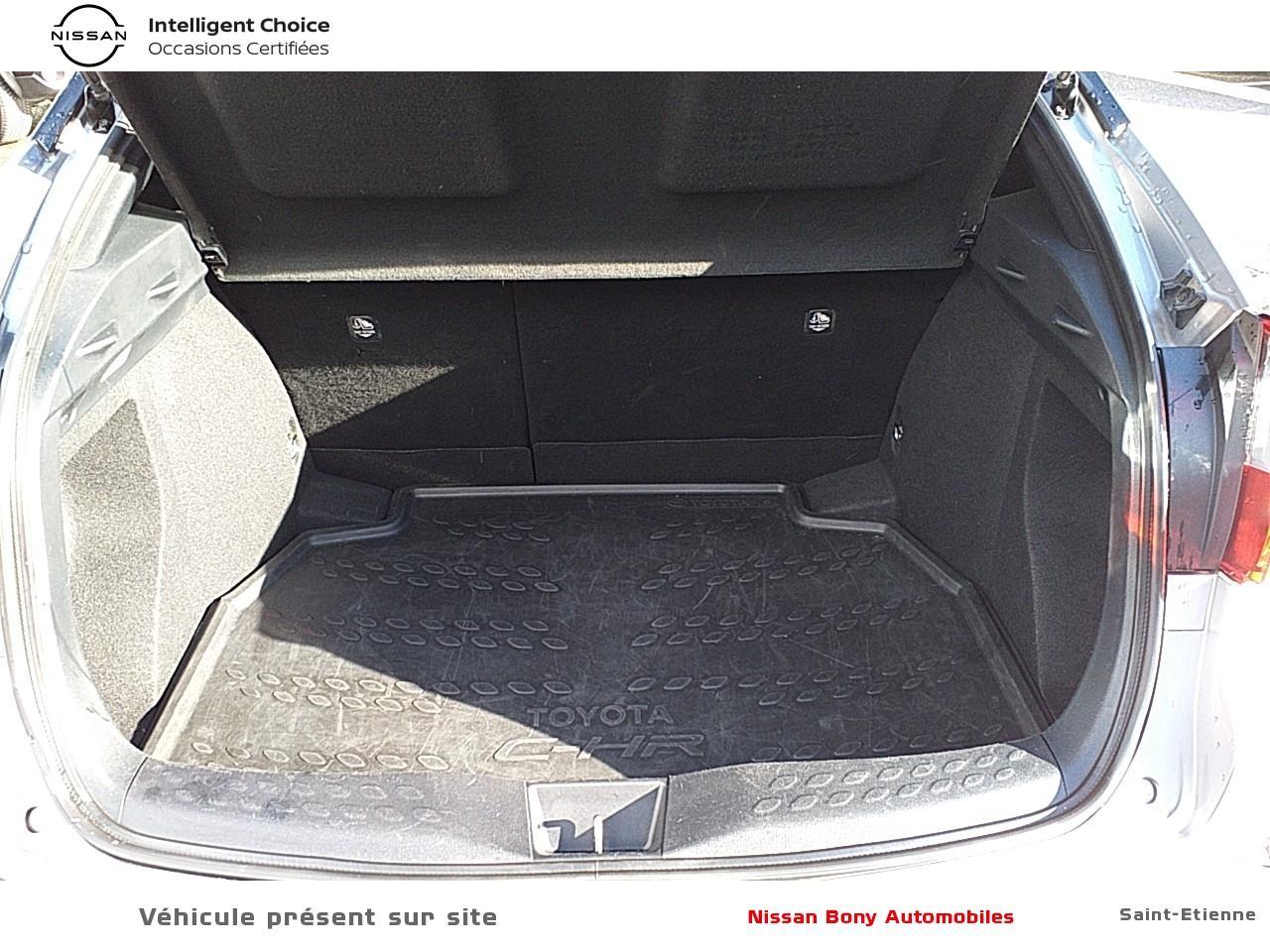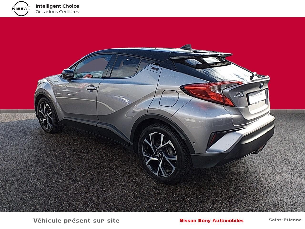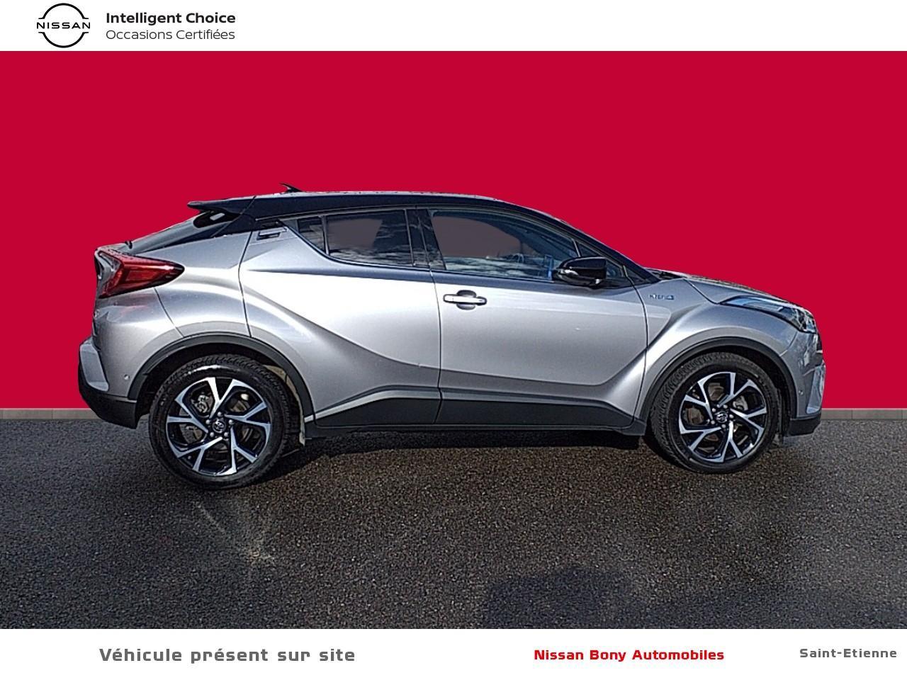 • 7 Airbags (frontaux et latéraux pour conducteur et passager AV, rideaux AV et AR et protège-genoux conducteur)• Allumage automatique des phares• Antenne aileron de requin• Avertisseur d'angles morts (BSM)• Avertisseur de circulation AR• Caméra de recul• Carrosserie bi-ton toit noir• Climatisation automatique bizone• Console centrale noire laquée• Détecteur de pluie• Ecran tactile 8"• Feux AR à LED• Feux de jour à LED• Fixation ISOFIX• Illumination des contre-portes• Indicateur de perte pression de pneus• Jantes alliage 18"• Kit de réparation anti-crevaison• Limiteur de vitesse• Lunette et vitres AR surteintées• Montant central (pilier B) noir laqué• Ordinateur de bord avec écran TFT couleur 4.2" multifonctions• Phares à extinction différée• Prises auxiliaire et USB• Projecteurs antibrouillard• Radars de stationnement AV et AR• Réglages manuels du siège conducteur• Rétroviseur intérieur anti-éblouissement• Rétroviseurs extérieurs chauffants• Rétroviseurs extérieurs rabattables automatiquement avec projection au sol du logo Toyota C-HR• Sellerie tissu gris foncé• Sièges AV chauffants• Sièges AV type sport avec maintiens latéraux• Support lombaire du siège conducteur (électrique)• Système d'aide au stationnement intelligent• Système d'amplification de freinage d'urgence BA• Système d'assistance au démarrage en côte (HAC)• Système d'ouverture/fermeture et démarrage sans clé "Smart Entry & Start" (conducteur, passager et coffre)• Système de contrôle de stabilité (VSC) + Système de contrôle de motricité (TRC)• Système de démarrage sans clé "Smart Start"• Système de fixation ISOFIX aux places latérales AR• Système de freinage antiblocage ABS• Système de téléphonie Bluetooth• Système multimédia Toyota Touch 2 (Système audio avec radio)• Toyota Safety Sense• Vitres AV et AR électriques• Volant cuir• Peinture métallisée• Toyota Touch & Go 2 Plus : système de navigation à écran tactile avec info trafic, cartographie européenne, visualisation 3D et reconnaissance vocale