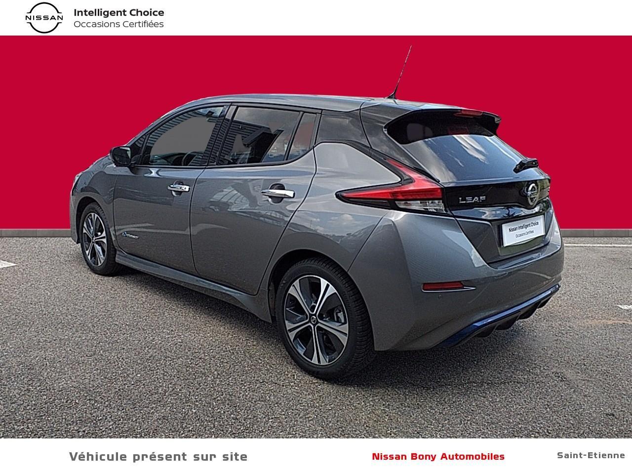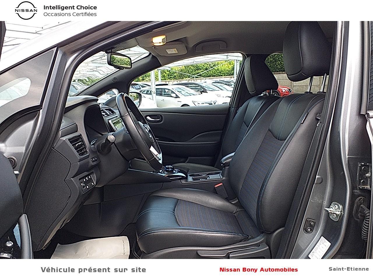 • 6 Airbags : frontaux, latéraux, rideaux• ABS et EBD• Aide au démarrage en côte• Alerte de franchissement de ligne• Allumage automatique des feux• Chargeur embarqué de 6,6kW (pour recharge en 7h sur une wallbox de 32A)• Combiné d'instrumentation avec écran HD TFT 7" couleur• Connecteur pour chargeur rapide CHAdeMO (recharge à 80% en 40 min)• Câble 32A de 6m (pour recharge en 7h)• Câble de 6m (pour recharge en 21h)• Déclenchement de la climatisation à distance• Déclenchement de la recharge à distance• ESP• Essuie-glace AV à déclenchement automatique• Feux antibrouillard AV• Feux diurne LED avec signature lumineuse• Freinage d'urgence intelligent (AEB) avec détection piéton• Jantes alliage 17"• Limiteur et régulateur de vitesse• Mode de conduite "B"• Mode de conduite ECO• Montant central de porte noir laqué• Nissan AVM - Vision Intelligente à 360°• Nissan Connect 7.0"• Poignées de portes chromées• Points d'ancrage pour sièges enfants ISOFIX à l'AR• Pompe à chaleur• Programmation de la recharge• Prévention de franchissement de ligne intelligent• Radars de stationnement AV et AR• Reconnaissance des panneaux de signalisation• Régulateur de vitesse intelligent• Rétroviseur intérieur électrochromatique• Rétroviseurs extérieurs couleur carrosserie avec clignotant à LED intégré• Rétroviseurs extérieurs dégivrants• Rétroviseurs extérieurs rabattables électriquement• Sellerie cuir/tissu Noir ou Beige• Siège conducteur réglable en hauteur• Sièges AV/AR chauffants• Surveillance des angles morts• Système "Chassis Control" (contrôle actif de trajectoire et de l'assiette)• Système audio CD/RDS 6HP avec commandes au volant et connexion USB pour iPod, lecteur MP3• Système d'alerte anticollision AR intelligent• Système d'ouverture et de démarrage sans clé "Intelligent key"• Système de contrôle de la pression des pneus• Technologie E-pedal• Vitres AR et de hayon teintées• Vitres AR surteintées• Vitres électriques à l'AV et à l'AR• Volant chauffant