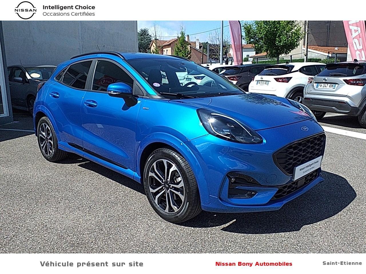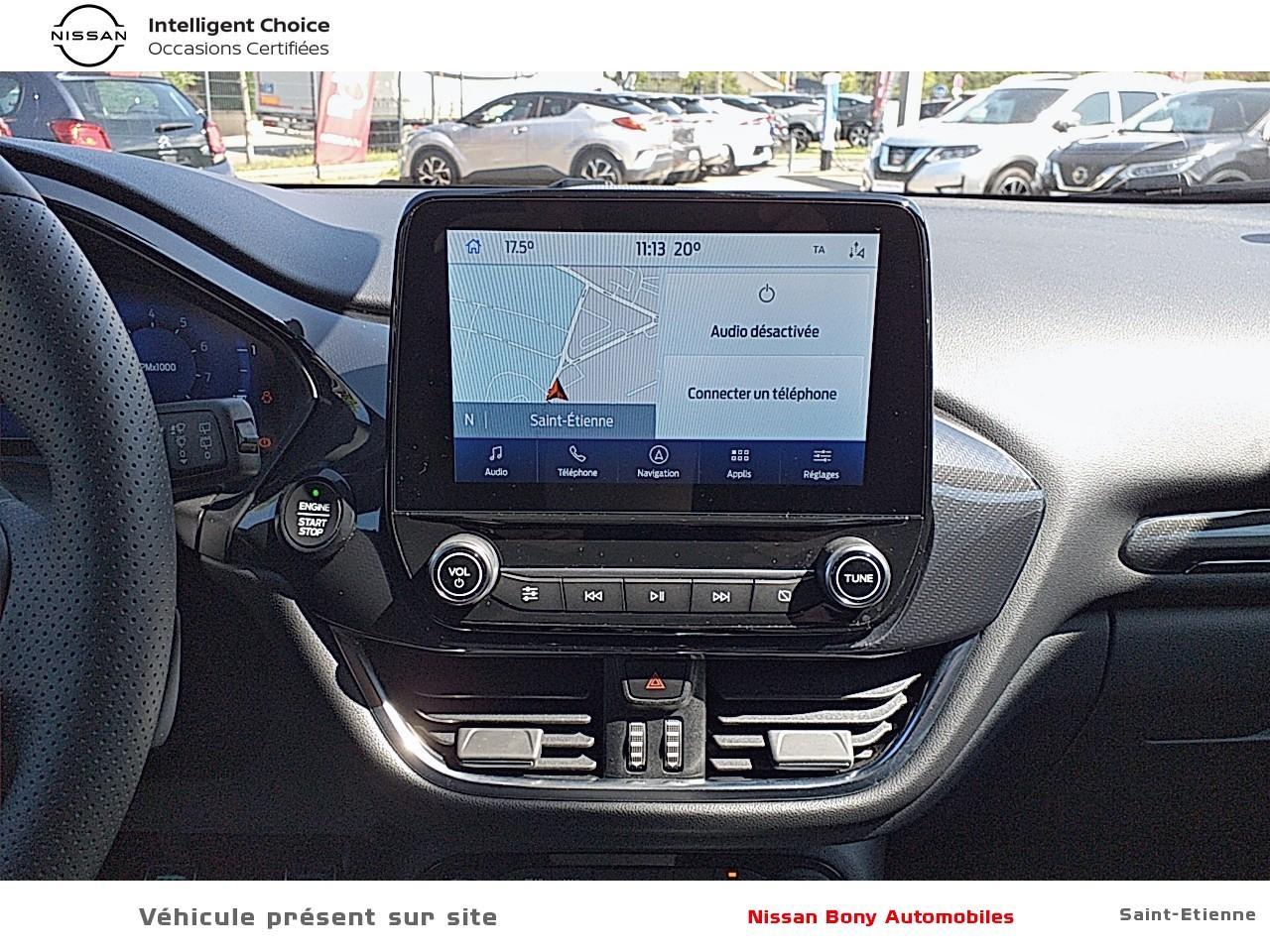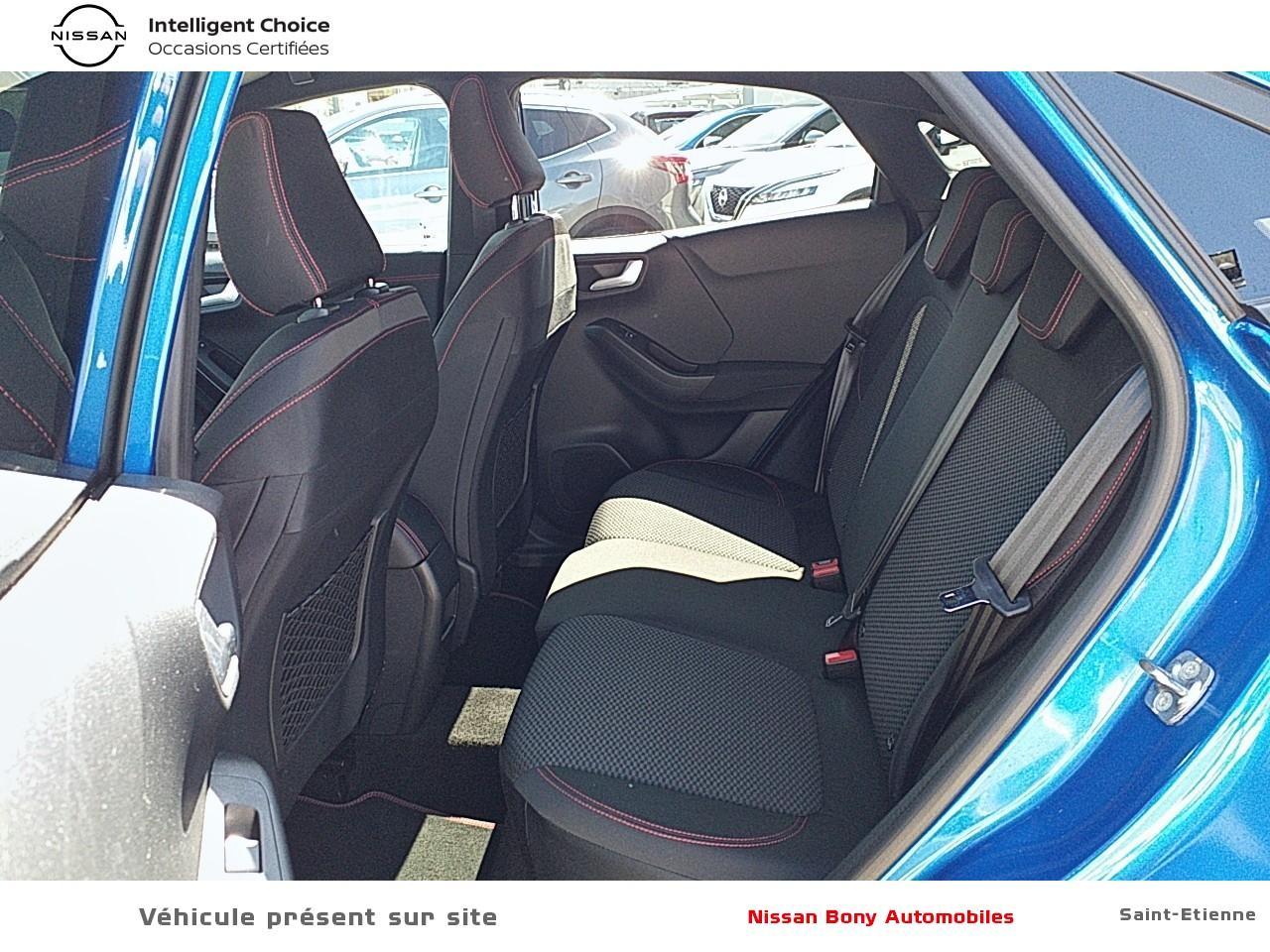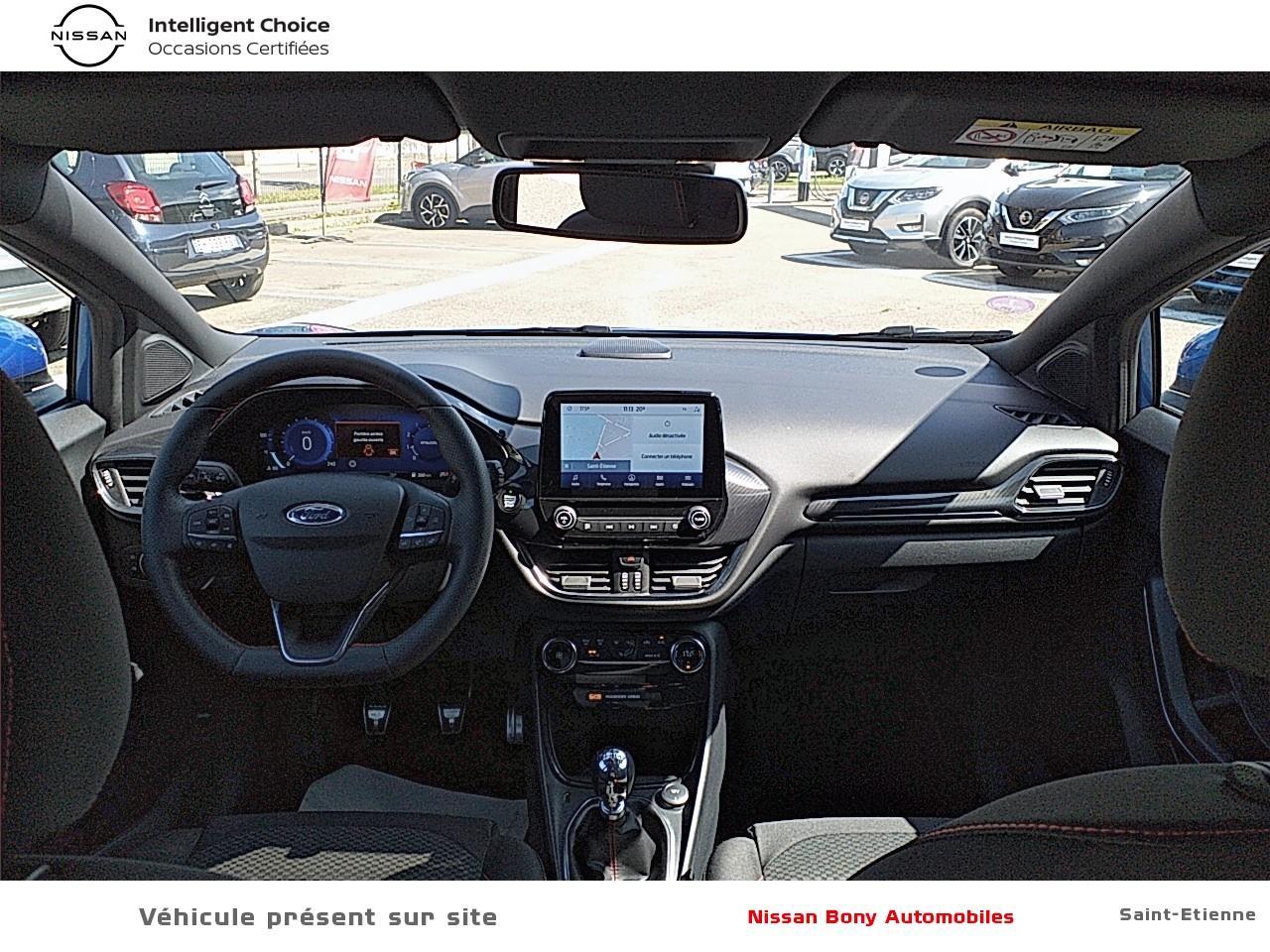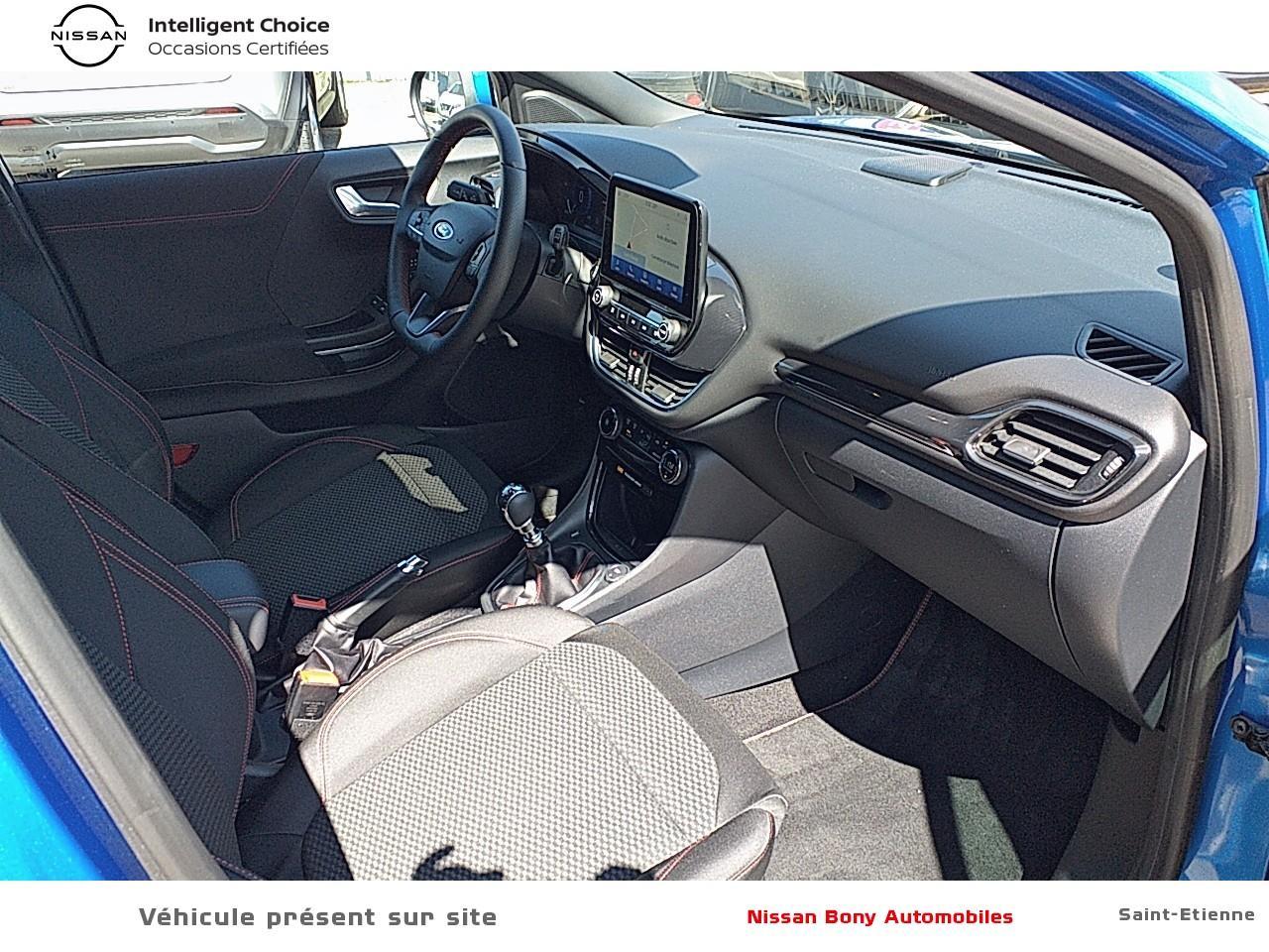• 5 Modes de conduite sélectionnables (normal, eco, sport, faible adhérence, trail)• Aide au démarrage en côte• Aide au maintien dans la voie avec détection des bas-côtés• Aide au stationnement AR• Air conditionné manuel• Airbags frontaux, latéraux (thorax) et rideaux• Alerte de ceinture de sécurité AV/AR• Alerte de franchissement involontaire de ligne• Allumage automatique des feux avec feux de jour AV• Badges extérieurs ST-Line• Banquette AR rabattable 60/40• Becquet AR couleur carrosserie• Becquet couleur carrosserie• Bouton de démarrage "Ford Power"• Combiné d'instrumentalisation numérique 12.3" avec Ecomode• Console centrale avec accoudoir et rangements• Correcteur électronique de trajectoire (ESP)• Direction assistée électrique• Disques de frein AV et AR• Désactivation de l'airbag passager• Eclairage d'ambiance intérieur• Environnement noir• Feux AR à LED• Feux antibrouillard AV avec cerclages chromés• Feux de jour à LED• Feux de route intelligents - Commutation automatique des feux de route aux feux de croisement• FordPass Connect avec modem embarqué et fonction E-Call• Grille de calandre ST-Line• Jantes alliage 17" 5x2 branches finition Black Machined (pour pneus toutes saisons 215/55 R17)• Kit de carrosserie ST-Line• Kit de réparation pneumatique• Levier de frein à main Sensico• Levier de vitesses Sensico avec insert aluminium• Limiteur de vitesse ASLD et régulateur de vitesse• Limiteur de vitesse intelligent (affichage instantané des limitations de vitesse sur le tableau de bord)• Pare-brise acoustique• Phares antibrouillard AV avec fonction éclairage des angles• Plaques de seuil de portes AV ST-Line• Pédalier Aluminium• Recharge de téléphone par induction• Reconnaissance des panneaux de signalisation• Régulateur de vitesse• Rétroviseurs extérieurs couleur carrosserie électriques, chauffants et rabattables électriquement avec éclairage d'approche• Sellerie Mixte noire tissu Tire on Casual et simili cuir Salerno• Sellerie tissu noir Court avec surpiqures rouges• Siège conducteur a réglage manuelle en hauteur avec soutien lombaire• Siège passager AV réglable en hauteur• Sortie d'echappement chromée• Suspension Sport• Système MyKey (seconde clé programmable)
