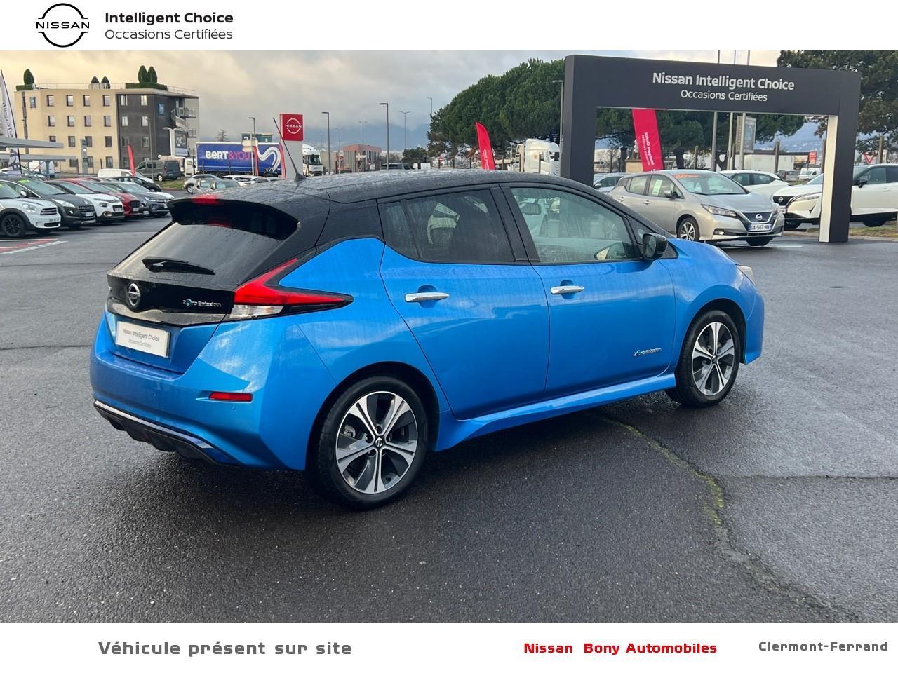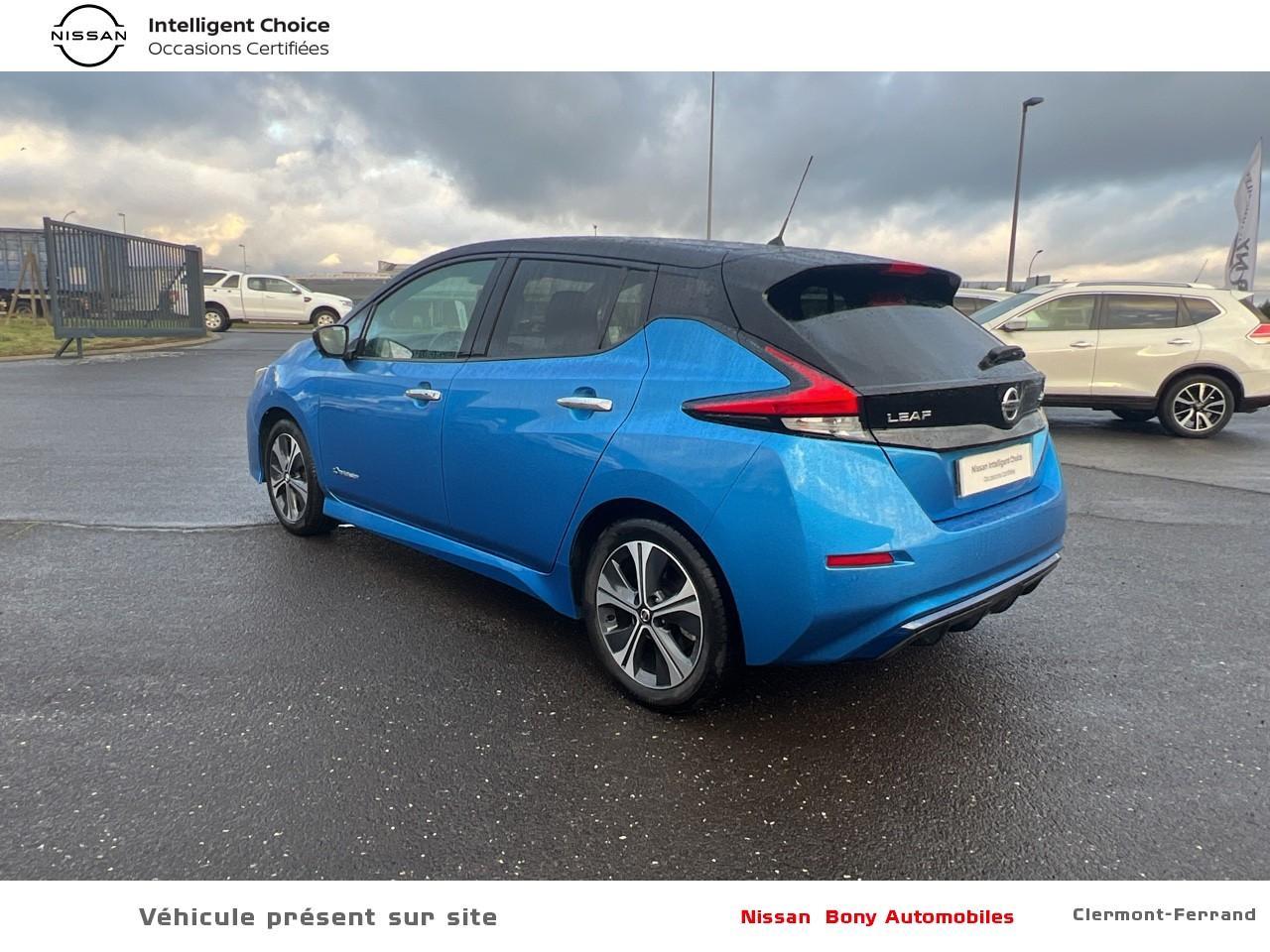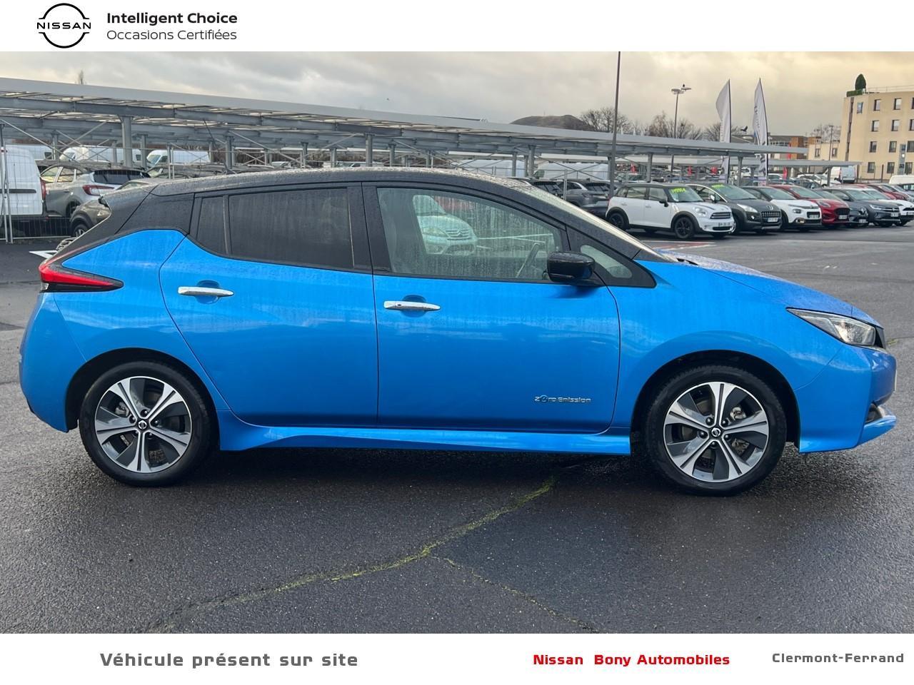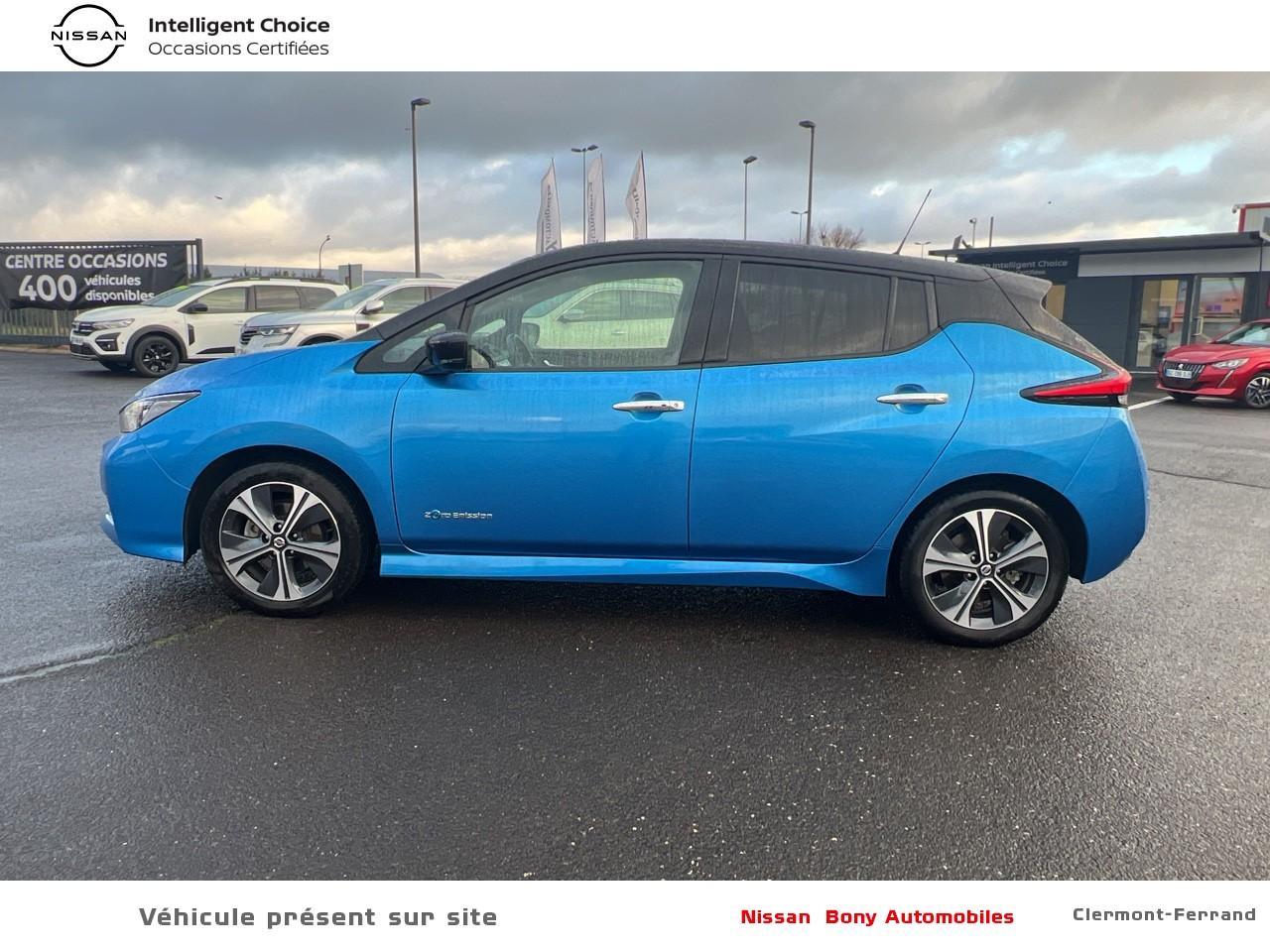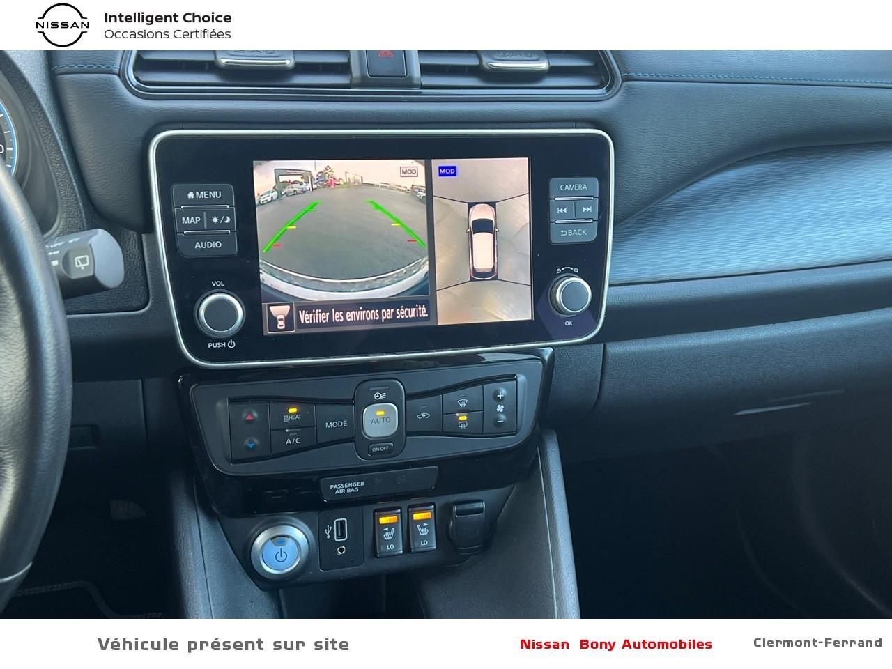 • ABS et EBD• Allumage automatique des feux• ESP• Jantes alliage 17"• Poches aumonières au dos des sièges AV• Poignées de portes chromées• Siège conducteur réglable en hauteur• Volant cuir• Système de contrôle de la pression des pneus• Vitres AR surteintées• Rétroviseurs extérieurs rabattables électriquement• Rétroviseurs extérieurs dégivrants• Allumage automatique des feux• Essuie-glace AV à déclenchement automatique• Système d'ouverture et de démarrage sans clé "Intelligent key"• Points d'ancrage pour sièges enfants ISOFIX à l'AR• Volant chauffant• 6 Airbags : frontaux, latéraux, rideaux• Aide au démarrage en côte• Pompe à chaleur• Déclenchement de la recharge à distance• Sièges AV/AR chauffants• Mode de conduite ECO• Mode de conduite "B"• Alerte de franchissement de ligne• Surveillance des angles morts• Programmation de la recharge• Rétroviseur intérieur électrochromatique• Feux antibrouillard AV• Freinage d'urgence intelligent (AEB) avec détection piéton• Reconnaissance des panneaux de signalisation• Prévention de franchissement de ligne intelligent• Technologie E-pedal• Frein de stationnement électrique• Radars de stationnement AV et AR• Régulateur de vitesse intelligent• Nissan AVM - Vision Intelligente à 360°• Système "Chassis Control" (contrôle actif de trajectoire et de l'assiette)• Limiteur et régulateur de vitesse• Système d'alerte anticollision AR intelligent• Rétroviseurs extérieurs couleur carrosserie avec clignotant à LED intégré• Déclenchement de la climatisation à distance• Vitres électriques à l'AV et à l'AR• Feux diurne LED avec signature lumineuse• Combiné d'instrumentation avec écran HD TFT 7" couleur• Câble de 6m (pour recharge en 21h)• Câble 32A de 6m (pour recharge en 7h)• Chargeur embarqué de 6,6kW (pour recharge en 7h sur une wallbox de 32A)• Connecteur pour chargeur rapide CHAdeMO (recharge à 80% en 40 min)• Montant central de porte noir laqué
