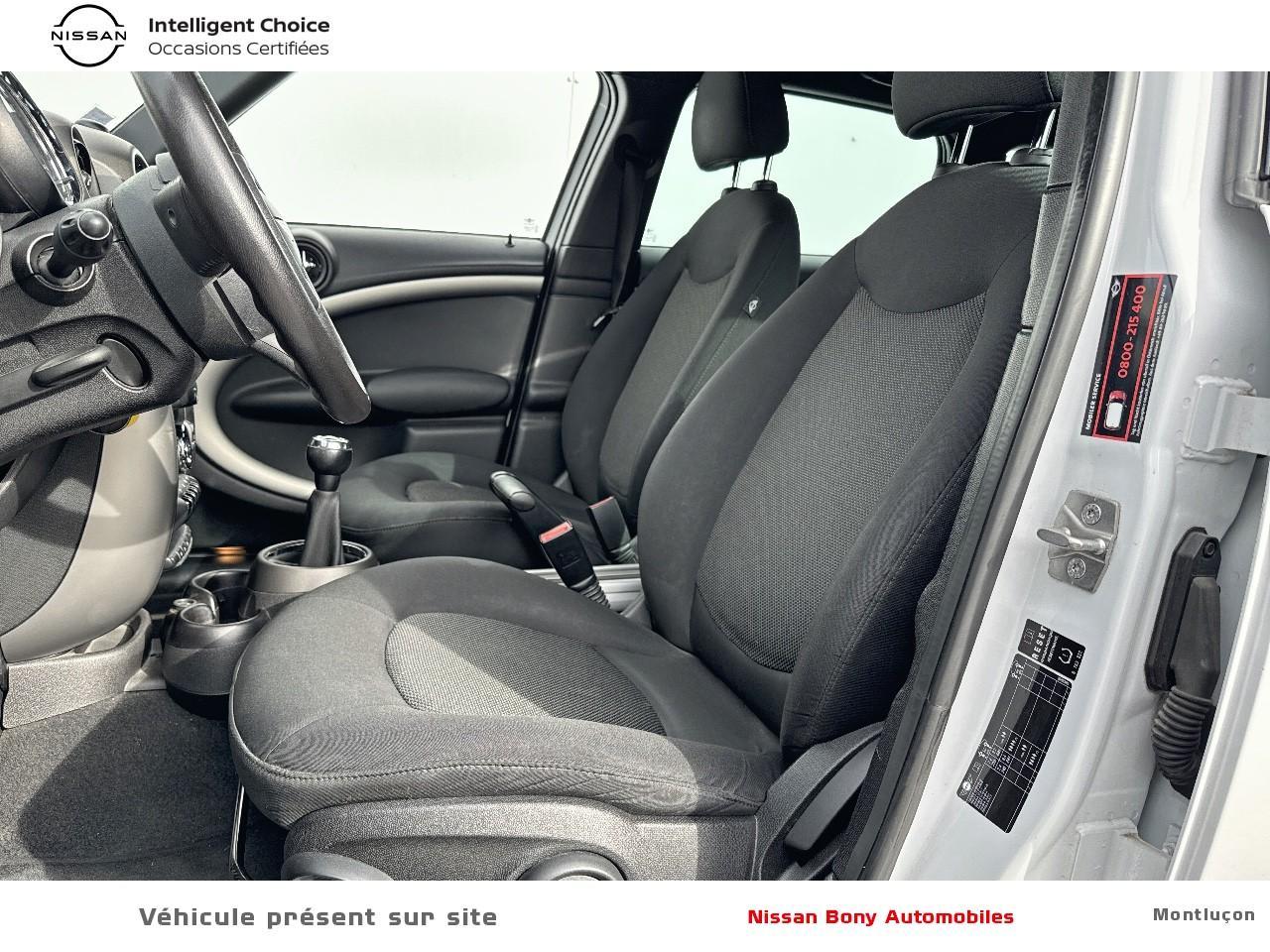 • Airbags de tête• Airbags latéraux AV• Lunette AR ouvrante surteintée et vitres latérales surteintées• Vitres AV et AR électriques (avec mode impulsionnel et anti-pincement côté conducteur)• Poignées de portes chromées• Poignées intérieures de portes chromées• Siège conducteur réglable en hauteur• Siège passager réglable en hauteur• Vitres teintées• Toit et coques de rétroviseurs de couleur blanche ou noire• Bouton de démarrage "Start/Stop"• Prise 12V entre les porte-gobelets AV• Fonction d'arrêt et de redémarrage automatique du moteur• Freins à disques AV et AR ventilés à l'AV• Désactivation de l'airbag passager à l'AV• Teinte de carrosserie unie• Toit couleur carrosserie• Système d'aide au stationnement PDC à l'AR• Ordinateur de bord• Fixations ISOFIX pour banquette AR• Indicateur de changement de rapport• Teinte d'habitacle Carbon Black• Réglage en hauteur du siège passager AV• Ecrous de roues antivol• 3ème feu stop• Pare-chocs AV et AR dans la couleur de la carrosserie• Sortie d'echappement simple, droite et chromée• ABS et assistance de freinage• Contrôle du freinage en courbe CBC• Système de récupération de l'énergie au freinage• MINI Mobility System• Verrouillage automatique des portes dès 15 Km/h environ• Verrouillage centralisé des portes, du coffre et de la trappe à carburant• Baguettes de seuils de portes avec inscription du modèle• Buses de lave-glace et rétroviseurs extérieurs dégivrants• Projecteurs AV et feux AR au contour chromé• Appuis-têtes AV et AR réglables en hauteur• Ceintures de sécurité à 3 points à toutes les places• Planche de bord noire avec insert chromé sur le volant• Sièges AV à réglage manuel en longueur et en inclinaison• Feux de stop dynamiques• Réglage manuel de la portée des projecteurs• Rétroviseurs extérieurs à réglage électrique avec miroir asphérique côté conducteur• Système de maintenance intelligent Condition Based Service• Banquette AR 3 places coulissante 60/40 avec dossiers rabattables 40/20/40• Rails de toit Silver• Calandre au contour chromé avec lamelles Silver• Porte-boissons AV (2)• Autoradio MINI CD avec prise AUX-IN et 5HP compatible MP3• Lève-vitres électriques AV et AR avec commande à impulsion à l'AV et protection anti-pincement