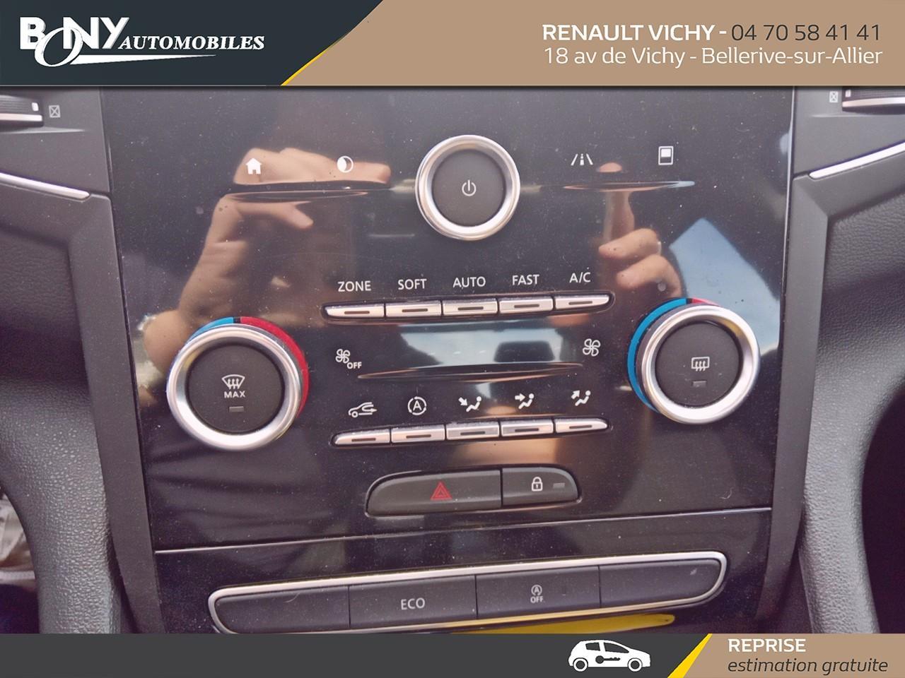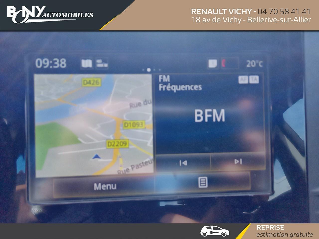 • Lunette AR chauffante• ATTENTION - Equipements en cours de saisie• Régulateur limiteur de vitesse• Assistance au freinage d'urgence (A.F.U.)• Volant cuir• Kit de gonflage et de réparation• Airbags latéraux et rideaux• Système de surveillance de la pression des pneus• ABS• Rétroviseur intérieur jour/nuit automatique• Capteur de pluie et de luminosité• Aérateurs aux places AR• Ecomode• Carte Renault "Mains libres"• Vitres teintées• Frein de parking assisté• Avertisseurs d'angles morts• Hayon manuel• Renault Multi-Sense (choix de modes de conduite)• Peinture Blanc Glacier• Climatisation automatique bi-zone• Feux de jour à LED• Rétroviseurs extérieur dégivrant, réglables et rabattables électriquement• Sièges à réglages manuels, massant côté conducteur• Aide au parking AV/AR, caméra de recul• Ambiance lumineuse• Jantes alliage 17" Bayadère• Phares halogène• Planche de bord Noir• Sellerie Tissu Noir• Prise 12V, USB et Auxiliaire 1er rang et 1 prise 12V en rang 2• Condamnation centralisée des portes• Pare-brise athermique• Tableau de bord digital• ESP avec Aide au démarrage en côté• Commandes vocales• Malle manuelle• Alerte détection de fatigue• Android Auto & Apple CarPlay• Feux anti-brouillard avant• 2 roues directrices• Vitres AV électriques impulsionnel et vitres AR électriques• Vitres AV et AR électriques impulsionnel• Feux AR normaux• Fixation ISOFIX/i-size• Aérateurs AR• Energy Smart Management• R-LINK 2 avec Cartographie Europe• Système multimédia avec écran tactile 7'', son Arkamys 8 HP, connectivité Bluetooth• Surtapis