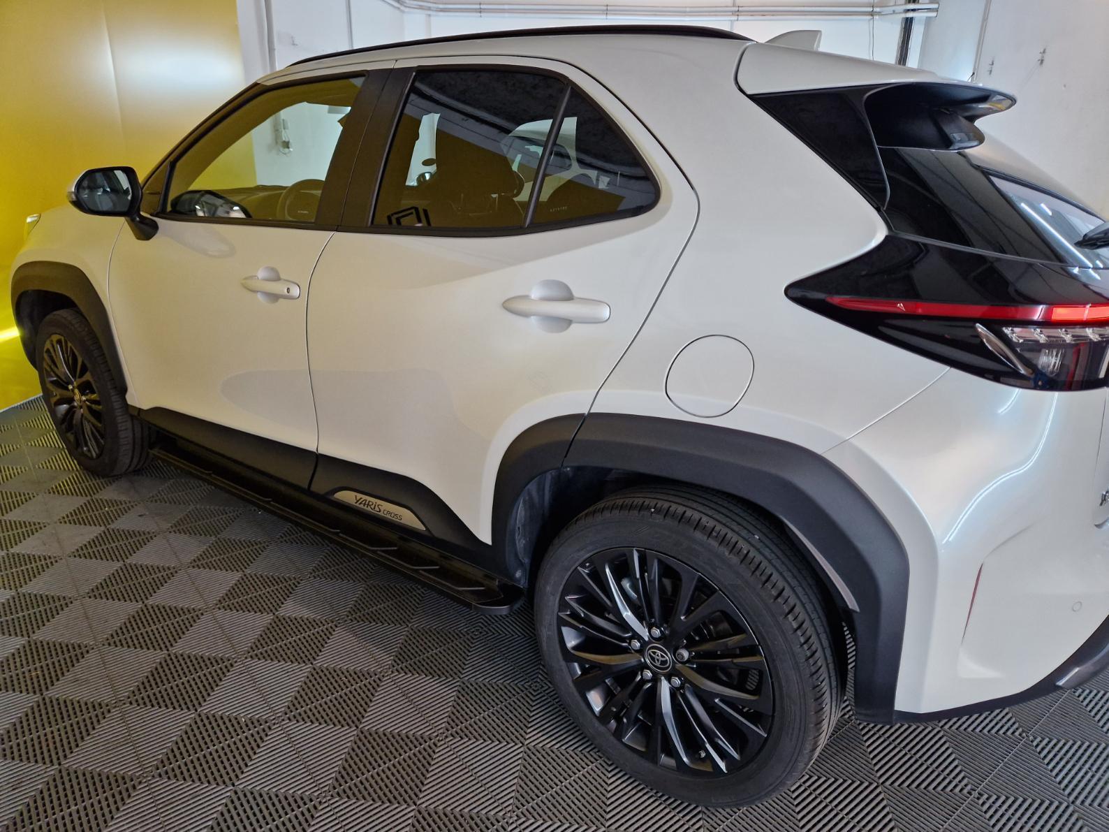 • 6 HP• Affichage tête haute• Allumage automatique des feux• Antenne de toit requin• Attaches de coffre• Avertisseur d'angles morts• Avertisseur de circulation AR• Boucliers AV/AR gris• Caméra de recul• Clignotants LED séquentiels• Climatisation automatique bizone• Connectivité Apple CarPlay et Android Auto sans fil• Double plancher du coffre modulable• Détecteur de pluie• Eclairage d'ambiance intérieur• Ecran TFT 7"• Ecran couleur tactile multifonction 9"• Ecrous antivol• Feux Full LED (AV/AR)• Feux antibrouillard full LED• Frein de parking électronique• Jantes alliage 18'' noires (10 doubles-branches)• Poches aumonières au dos des sièges AV• Purificateur d'air ionique nanoe• Radars de stationnement AV et AR• Rails de toit noir• Réglage lombaire électrique pour le siège conducteur• Rétroviseur intérieur électrochromatique• Sellerie mi-cuir Noir• Services connectés MyT• Seuils de portes en aluminium• Siège passager réglable en hauteur• Sièges AR rabattables 40:20:40• Sièges AV chauffants• Système d'appel d'urgence automatique e-Call• Système de fixation ISOFIX aux places latérales AR• Toyota Safety Sense• Toyota Smart Connect• Vitres AV et AR électriques• Vitres et lunette AR surteintées• Volant cuir• Rétroviseurs extérieurs rabattables électriquement et chauffants• Système d'ouverture/fermeture et démarrage sans clé "Smart Entry & Start"• Système multimédia Toyota Smart Connect : écran tactile 9", navigation connectée et contrôle à distance via l'application MyT (verrouiller/déverrouiller, climatisation et retrouver ma voiture avec allumage des feux clignotants)• Système multimédia Toyota Smart Connect : écran tactile 9", navigation connectée et contrôle à distance via l'application MyT (verrouiller/déverrouiller, relancer la climatisation et retrouver ma voiture avec allumage des feux clignotants) et 4 ans de mises à jour cartographiques et de services connectés inclus