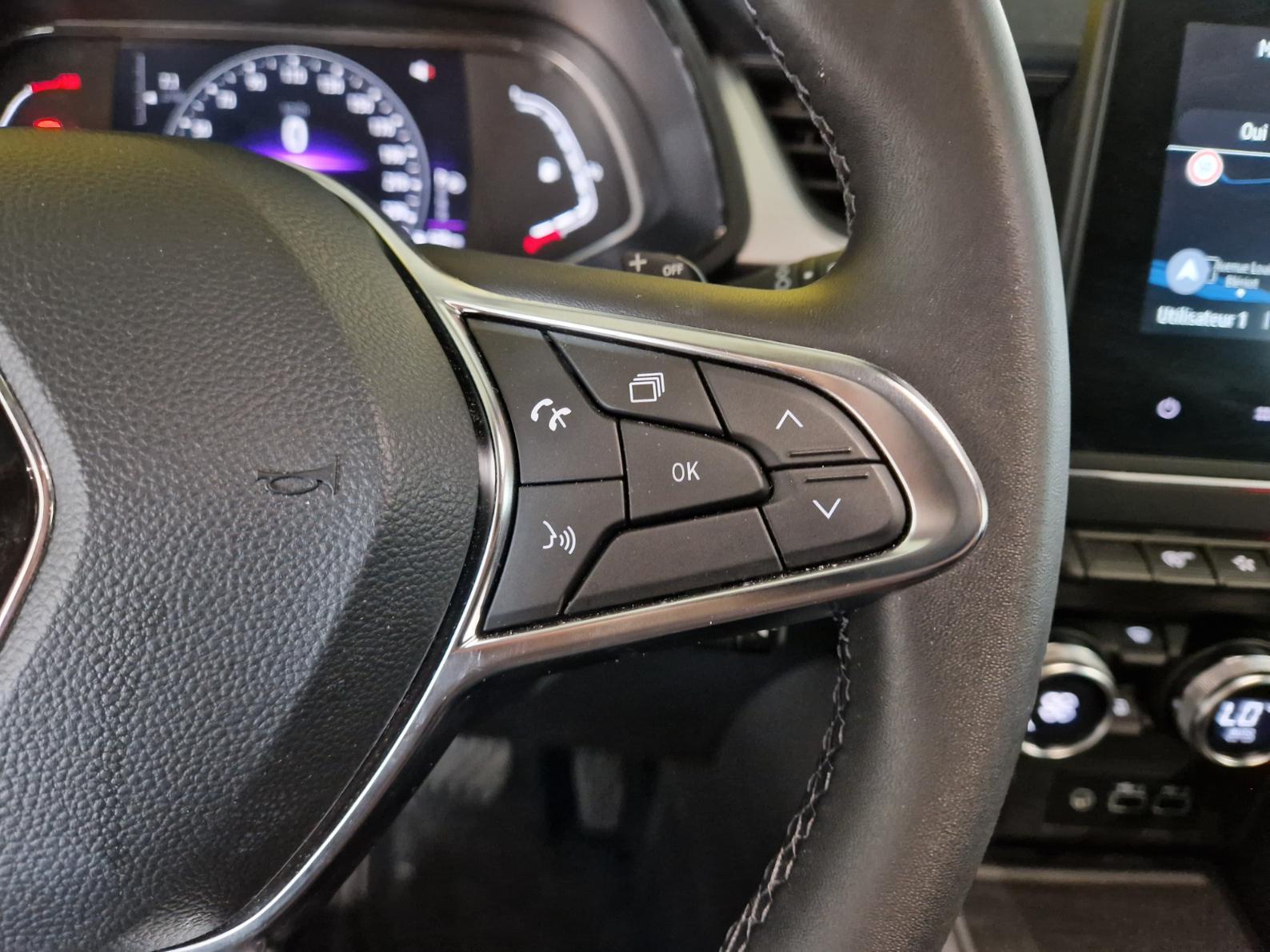• Aide au démarrage en côte• Aide au parking AV et AR• Airbag passager déconnectable• Airbags frontaux• Airbags latéraux AV• Alerte oubli des ceintures de sécurité aux 5 places• Allumage automatique des essuie-glaces• Antenne requin• Antiblocage des roues ABS• Appel d'Urgence Renault• Appuie-têtes AR• Assistance au freinage d'urgence (A.F.U.)• Assistant maintien de voie• Banquette AR coulissante et rabattable 1/3 - 2/3• Caméra de recul• Carte Renault "Mains libres"• Ceinture centrale arrière 3 points• Ceintures de sécurité AV réglables en hauteur• Classe energetique 1• Climatisation automatique• Commutation automatique des feux de route/croisement• Compartimentage de coffre• Console centrale de rangement avec accoudoir• Eclairage AV et AR Full LED Pure Vision• Feux AR 3D• Feux de stop à LED• Frein de parking électrique avec fonction Auto-Hold• Harmonie beige• Indicateur de changement de vitesse• Jantes alliage 18'' Pasadena diamantées gris erbé• Kit de gonflage et de réparation des pneumatiques• Lunette AR chauffante• Lève-vitres électriques et impulsionnels• Mode ECO• Navigation• Palettes au volant• Pneus à faible résistance au roulement• Poignées de portes ton caisse• Renault Multi-Sense (choix de modes de conduite)• Régulateur limiteur de vitesse• Répétiteurs latéraux de changement de direction• Rétroviseur intérieur électrochrome• Sans chargeur à induction• Sellerie TEP / tissu avec jonc gris• Sellerie tissu avec jonc gris• Siège AV réglable en hauteur• Système de détection de la pression des pneumatiques• Vitres AR surteintées• Volant en tissus• Alerte de survitesse avec reconnaissance des panneaux de signalisation