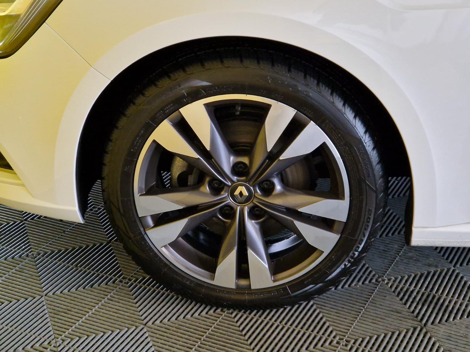 • ABS• Aide au démarrage en côte• Airbags frontaux et latéraux AV• Airbags rideaux AV / AR• Alerte Distance Sécurité• Alerte d'oubli de ceinture de sécurité• Android Auto & Apple CarPlay• Avertisseur de franchissement de ligne• Banquette AR rabattable 1/3-2/3• Caméra de recul et aides au parking AV/AR• Capteur de pluie et de luminosité• Carte Renault "Mains libres"• Cartographie Europe• Climatisation automatique bi-zone• Compteurs TFT 7" avec matrice couleur• Console centrale de rangement avec accoudoir• Déconnection airbag passager AV• Feux de jour à guide de lumière LED et effet 3D• Frein de parking assisté• Freinage actif d'urgence• Harmonie Carbone foncé• Jantes alliage 17" Bayadère• Kit de gonflage et de réparation• Lève-vitres électrique AR impulsionnels• Lève-vitres électriques AV impulsionnels• Pare-soleil avec miroir de courtoisie éclairé• Peinture Blanc Glacier• Prise 12V AV/AR• Projecteurs antibrouillard• Projecteurs avant FULL LED• Pré-équipement services connectés• R-Link 2 avec services connectés• Radio multimédia avec écran capacitif 8,7" vertical• Renault Multi-Sense (choix de modes de conduite)• Régulateur de vitesse• Rétroviseur intérieur électrochrome• Rétroviseurs extérieurs rabattables électriquement• Sellerie mixte similicuir / velour noir• Système de fixations ISOFIX aux places latérales AR• Vitres latérales et AR surteintées• Volant cuir Nappa• Alerte de survitesse avec reconnaissance des panneaux de signalisation• Sièges AV réglables en hauteur et siège conducteur avec réglage lombaire• Affichage tête haute• Peinture Blanc Nacré• Roue de secours galette 17"