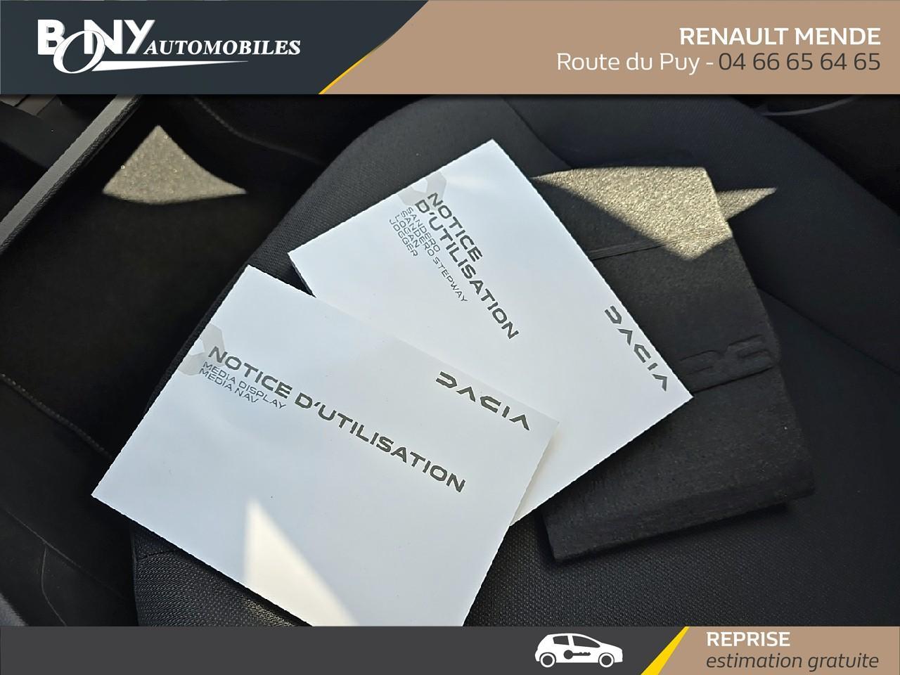 • 3 appuis-têtes AR• Airbag frontal conducteur et passager• Airbag latéral avant : thorax + rideau• Allumage automatique des feux• Banquette AR rabattable 1/3-2/3• Bouton appel d'urgence• Chauffage avec recyclage d'air• Cluster TFT• Clé 3 boutons• Condamnation centralisée des portes• Condamnation des ouvrants en roulant• Console basse + rangement ouvert• Détection de pression des pneus• Enjoliveur 15'' Elma• Feux arrières avec signature lumineuse Y• Feux de jour à LED• Fonction éco-mode• Kit de gonflage• Lève-vitres AR manuels• Lève-vitres AV électriques• Nouvelle identité visuelle• Ordinateur de bord• Peinture opaque• Rappel de bouclage de ceintures• Roues tôle 15"• Régulateur et limiteur de vitesse• Rétroviseur intérieur jour/nuit• Rétroviseurs extérieurs à réglages manuel• Sellerie essentiel• Signature lumineuse DACIA en Y à LED• Siège conducteur réglable en hauteur + accoudoir AV• Système anti-blocage des roues (ABS)• Système de fixation Isofix• Vitres teintées• Volant mousse• Volant réglable en hauteur• Assistance au freinage d'urgence + allumage des warnings• Système de freinage d'urgence autonome à des vitesses interurbaines 7-170km/h• Media control (Streaming audio bluetooth avec support téléphone, 2 haut-parleurs, 1 USB)• Peinture métallisée