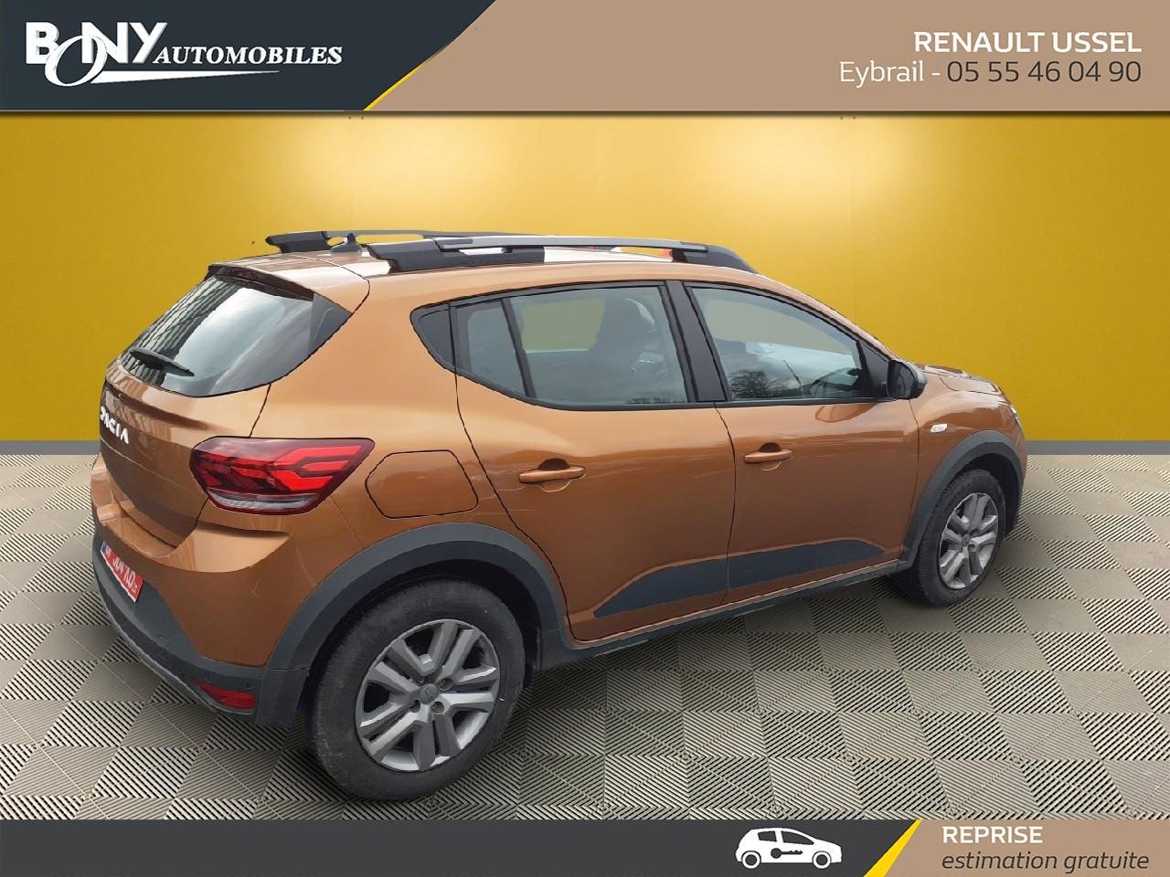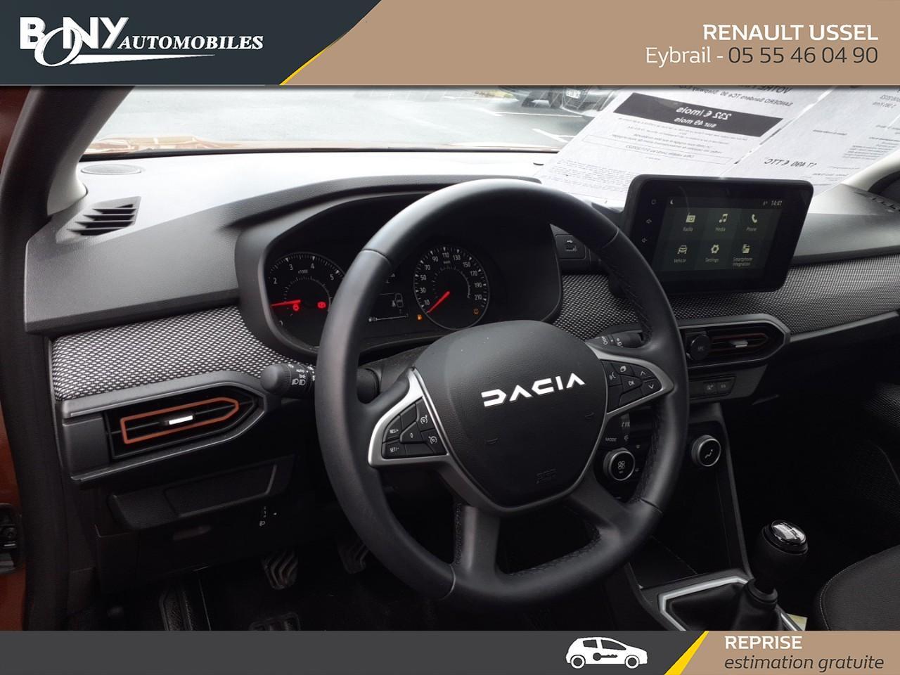 • 3 appuis-têtes AR• Aide au parking AR• Airbag frontal conducteur et passager• Airbag latéral avant : thorax + rideau• Allumage des feux et essuie-glace automatiques• Assistance au freinage d'urgence + allumage des warnings• Banquette AR rabattable 1/3-2/3• Barres de toit modulables• Bouton appel d'urgence• Climatisation manuelle• Climatisation manuelle• Cluster TFT• Clé 3 boutons• Condamnation centralisée des portes• Condamnation des ouvrants en roulant• Console basse + rangement ouvert• Détection de pression des pneus• Enjoliveur 16'' Saria - Stepway• Feux arrières avec signature lumineuse Y• Feux de jour à LED• Fonction éco-mode• Kit de gonflage• Lève-vitres AR électriques• Lève-vitres AV électriques, conducteur impulsionnel• Media display (écran 8'', réplication smartphone, 4 haut-parleurs, 1 port USB)• Nouvelle identité visuelle• Ordinateur de bord• Peinture opaque• Plancher de coffre plat• Projecteurs antibrouillard• Rappel de bouclage de ceintures• Régulateur et limiteur de vitesse• Rétroviseur intérieur jour/nuit• Rétroviseurs extérieurs Noir• Rétroviseurs extérieurs spécifiques• Rétroviseurs extérieurs électriques et dégivrants• Sellerie Stepway avec surpiqures• Signature lumineuse DACIA en Y à LED• Siège conducteur réglable en hauteur + accoudoir AV• Système anti-blocage des roues (ABS)• Système de fixation Isofix• Système de freinage d'urgence autonome à des vitesses interurbaines 7-170km/h• Vitres teintées• Volant Soft Feel TEP• Volant réglable en hauteur et en profondeur
