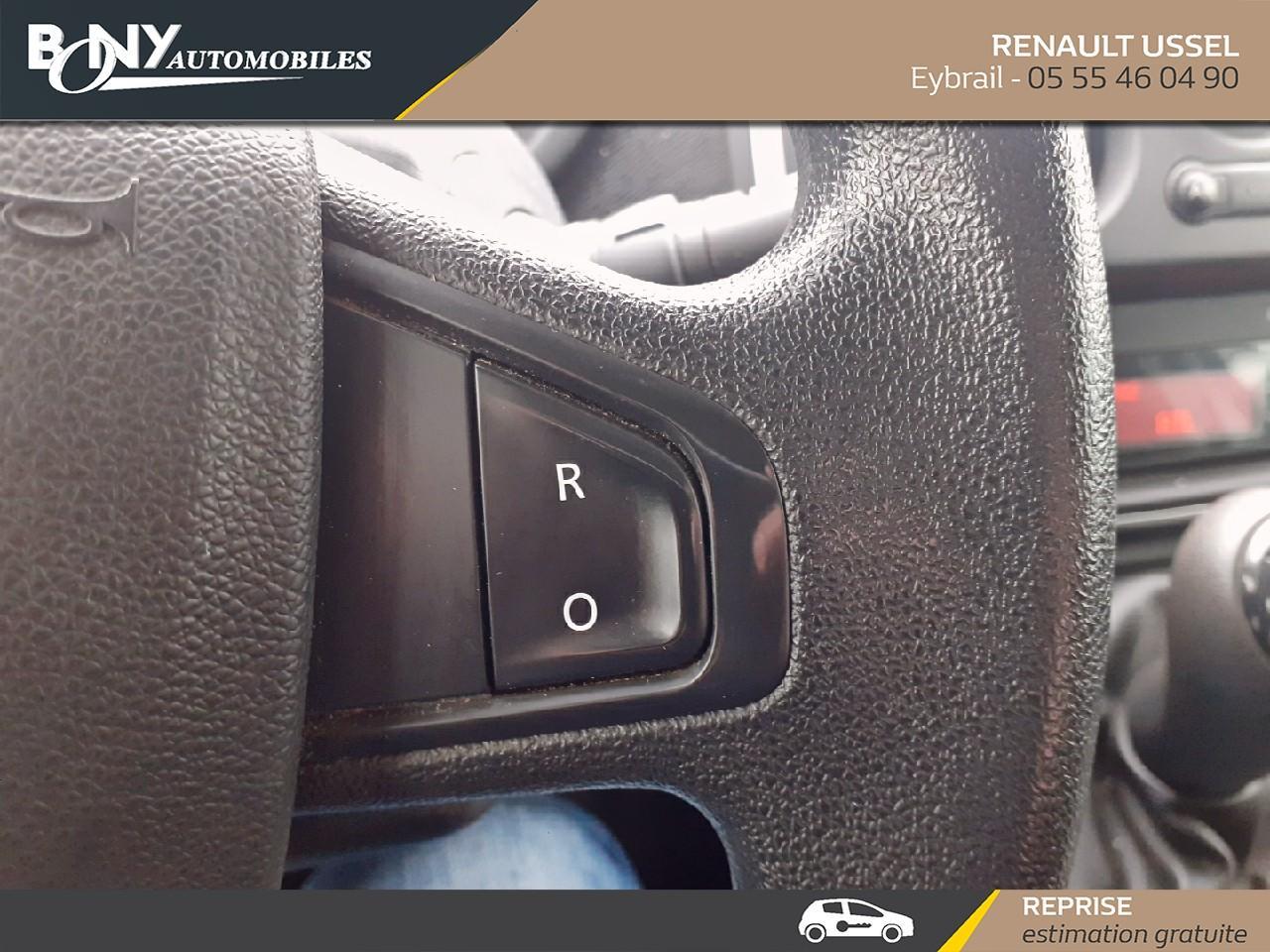 • 2 portes AR asymétriques tolées• ABS + EBV (répartiteur électronique de freinage)• Aide au freinage d'urgence AFU• Airbag frontal conducteur• Alarme sonore de non extinction des feux et voyant de fermeture des portes• Alerte d'oubli ceinture de sécurité• Alerte sonore oubli de ceinture de sécurité conducteur• Allonges feux AR noir grainé• Appuis-tête AV réglables en hauteur• Bacs de rangement dans les panneaux de portes AV• Boucliers AV/AR, rétroviseurs et baguettes latérales noir grainé• Bouton eco-mode• Boîte à gants fermée• Ceintures de sécurité AV réglables en hauteur• Ceintures de sécurité avant 3 points avec double prétensionneur et limiteur d'effort• Climatisation manuelle• Cloison complète tôlée• Clé 2 boutons• Compte-tours• Condamnation automatique des ouvrants en roulant (CAR)• Condamnation centralisée des portes• Condamnation centralisée des portes par télécommande à radiofréquence• Connectique dans zone de chargement• Direction assistée électrique à assistance variable• ESP+Extended Grip+Aide au démarrage en côte• Eclairage du coffre• Eclaireur central AV 3 positions• Enjoliveurs pleins• Essuie-vitres Flatblades• Filtre pollen• Filtre à particules• Fonction éclairage d'accompagnement extérieur (Follow me home)• Freins AR à tambours• Harmonie Carbone Foncé• Lève-vitres AV électriques, impulsionnel à la descente côté conducteur• Module central de rangement/accoudoir plastique entre sièges AV• Motorisation Stop&Start• Ordinateur de bord• Peinture opaque• Porte latérale droite coulissante tôlée• Protection plastique sous moteur• Prédisposition barres de toit et galerie• R-Plug&Radio (Bluetooth+USB+affichage intégré)• Rack de rangement supérieur (capucine)• Roue de secours• Roues tôlées 15"• Régulateur limiteur de vitesse• Rétroviseurs extérieurs chromés à réglages manuel et dégivrants• Sellerie Tissu Tanega• Siège conducteur réglable en hauteur