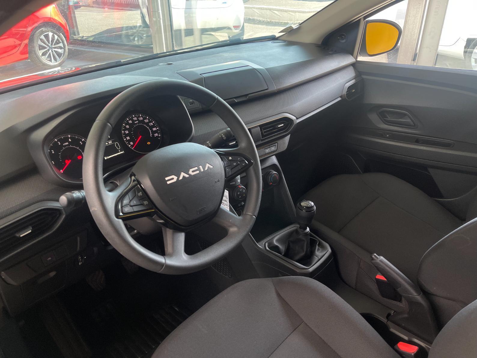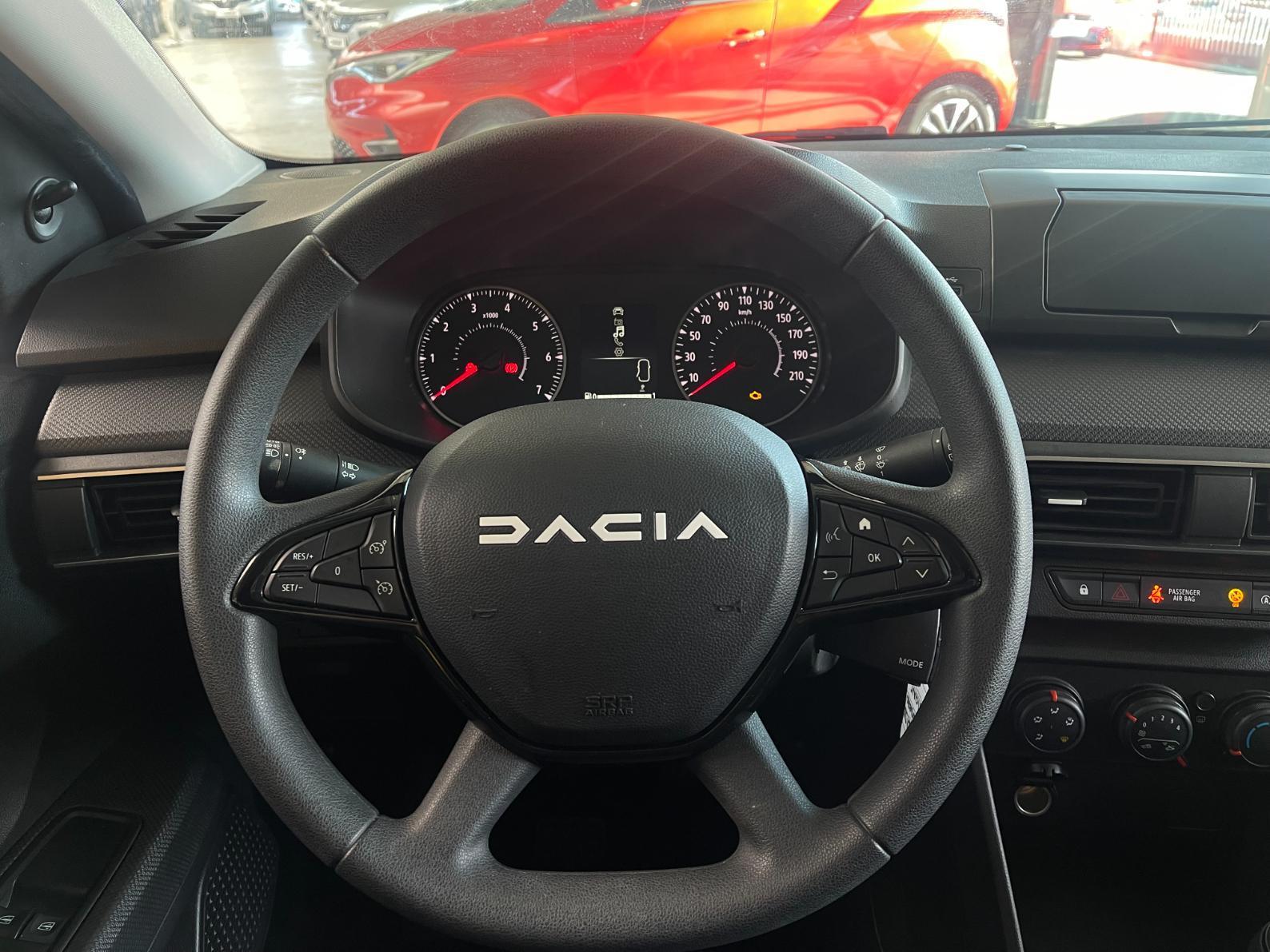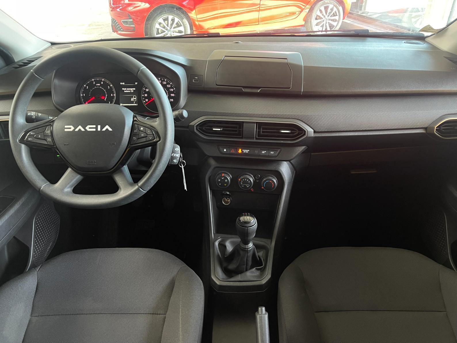 • Condamnation des ouvrants en roulant• Rétroviseur intérieur jour/nuit• Volant mousse• Rétroviseurs extérieurs à réglages manuel• Fonction éco-mode• Ordinateur de bord• Lève-vitres AV électriques• Vitres teintées• Système anti-blocage des roues (ABS)• Kit de gonflage• Volant réglable en hauteur• Lève-vitres AR manuels• Système de fixation Isofix• Peinture opaque• Allumage automatique des feux• Détection de pression des pneus• 3 appuis-têtes AR• Chauffage avec recyclage d'air• Clé 3 boutons• Console basse + rangement ouvert• Siège conducteur réglable en hauteur + accoudoir AV• Cluster TFT• Sellerie essentiel• Media control (Streaming audio bluetooth avec support téléphone, 2 haut-parleurs, 1 USB)• Airbag frontal conducteur et passager• Airbag latéral avant : thorax + rideau• Assistance au freinage d'urgence + allumage des warnings• Bouton appel d'urgence• Feux arrières avec signature lumineuse Y• Banquette AR rabattable 1/3-2/3• Signature lumineuse DACIA en Y à LED• Feux de jour à LED• Rappel de bouclage de ceintures• Condamnation centralisée des portes• Système de freinage d'urgence autonome à des vitesses interurbaines 7-170km/h• Régulateur et limiteur de vitesse• Nouvelle identité visuelle• Enjoliveur 15'' Elma• Roues tôle 15"