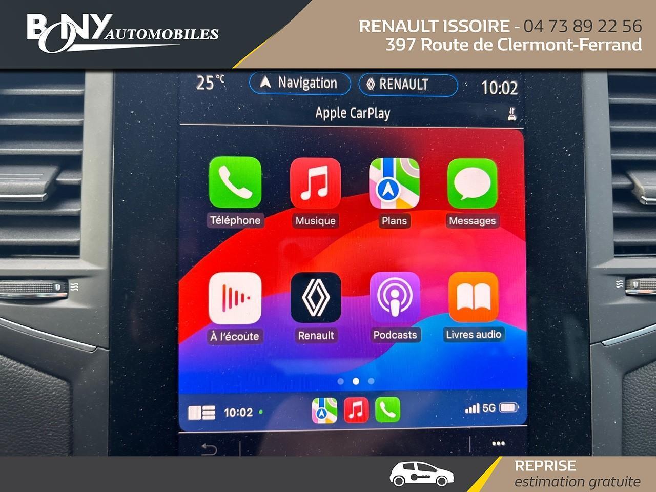 • Vitres latérales et AR surteintées• Vitres et lunette AR surteintées• Projecteurs antibrouillard• Kit de gonflage et de réparation• Régulateur de vitesse• Rétroviseur intérieur électrochrome• Capteur de pluie et de luminosité• Frein de parking assisté• Rétroviseurs extérieurs rabattables électriquement• Renault Multi-Sense (choix de modes de conduite)• Alerte Distance Sécurité• Aide au parking AV / AR• Banquette AR rabattable 1/3-2/3• Climatisation automatique bi-zone• Aide au démarrage en côte• Alerte de survitesse avec reconnaissance des panneaux de signalisation• Harmonie Carbone foncé• Console centrale de rangement avec accoudoir• Pare-soleil avec miroir de courtoisie éclairé• Sièges AV réglables en hauteur et siège conducteur avec réglage lombaire• Feux de jour à guide de lumière LED et effet 3D• Airbags frontaux et latéraux AV• Airbags rideaux AV / AR• Système de fixations ISOFIX aux places latérales AR• Assistant maintien de voie• Alerte détection de fatigue• ABS avec aide au freinage d'urgence• Caméra de recul• Sièges AV non chauffants• Commutation automatique des feux de route/croisement• Déconnexion airbag passager AV• Appel d'Urgence Renault• Antenne requin• Jantes alliage 17" Allium• Séquence d'accueil à l'approche avec éclairage de signature lumineuse• Volant Soft-Touch• Pré-équipement services connectés• Lève-vitres électriques avec fonction anti-pincement• Lève-vitres électriques avec fonction impulsionnelle• Mise à jour de l'alerte oubli de ceinture de sécurité• Carte Renault avec accès et démarrage mains libres avec fermeture à l'éloignement• Feux Full LED• Sellerie mixte similicuir/tissu noir• Freinage actif d'urgence avec détection piétons• Tableau de bord avec écran numérique et personnalisable 10"• Jantes 17"• Système multimédia EASY LINK 9,3" avec navigation• Banquette AR rabattable 1/3 - 2/3• Compatibilité Apple CarPlay Wifi• Prise 12V à l'AV
